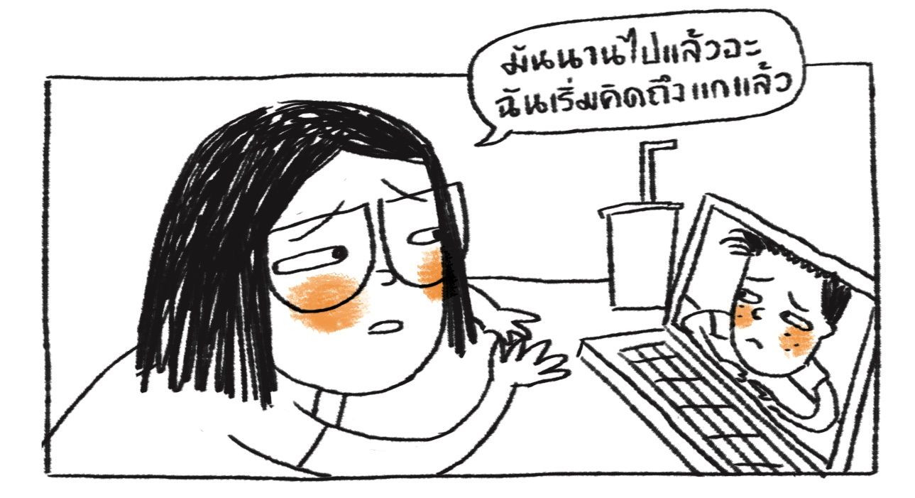 “ห่างกันมากที่สุดก็คือ 1 ปี มีง้องแง้งใส่กันบ้าง คือก่อนเค้าจะบินไปเรานี่ร้องไห้เป็นจริงเป็นจัง 3 คืนติดต่อกันแบบนอนสต๊อปจริงๆ ในหัวคิดแต่ว่า ถ้าเค้ามีใหม่ ถ้าเค้าทิ้งเรา จะทำยังไง จนเค้าไปถึงนู่น ก็ประสาทจะกินอยู่ทุกวันจริงๆ เวลาเฟซไทม์ไปแล้วไม่ยอมรับสาย ก็จะเริ่มคิดละว่าอยู่กับใครรึเปล่า ทำไมหายไปนาน ทำให้ทะเลาะกันจุกจิกอยู่เรื่อยๆ ทางนู้นคือไม่ว่างจริงๆ เรียนอยู่ เราก็ไปหาเรื่องว่าทำไมอย่างงุ้นอย่างงี้”