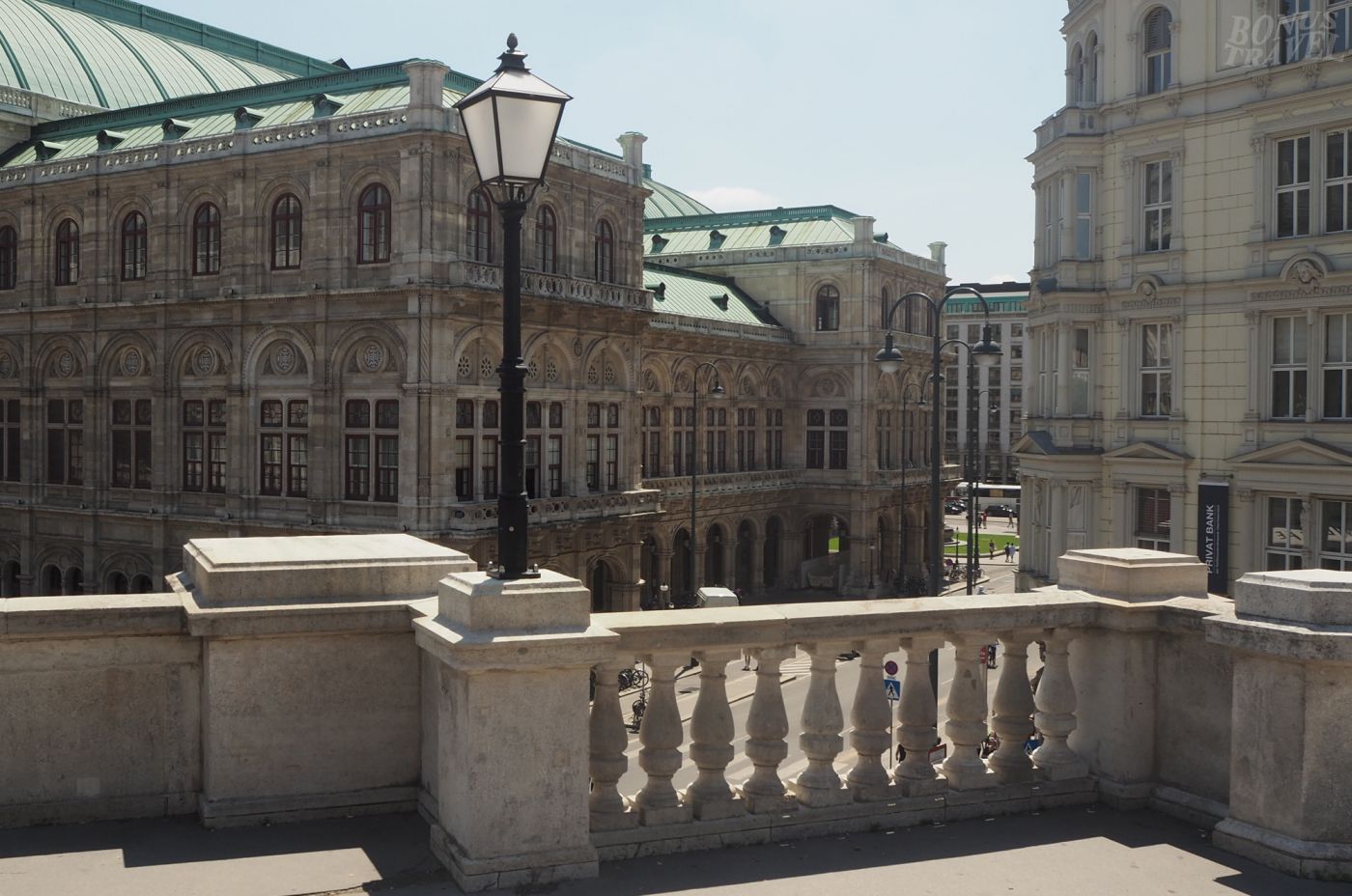 ฉากสุดคลาสสิคที่เป็นที่จดจำอีกอันหนึ่ง ซึ่งขอบอกว่าเราไปตอนประมาณ 2ทุ่มครึ่ง พระอาทิตย์ก็ยังไม่ตกเช่นเคย คนก็เริ่มเยอะขึ้นโดยเฉพาะนักท่องเที่ยวเกาหลี(อีกแล้ว) ซึ่งมาออกันตรงที่พระเอกกับนางเอกนั่ง ทำให้การถ่ายโดยไม่ติดคนของเราลำบาก แต่สักพักเขาก็ไป เรารอจนไฟเปิดประมาณเกือบสี่ทุ่มได้ และมันก็คุ้มค่ามาก เพราะมันสามารถมองเห็นไป State Opera ได้อย่างสวยงาม