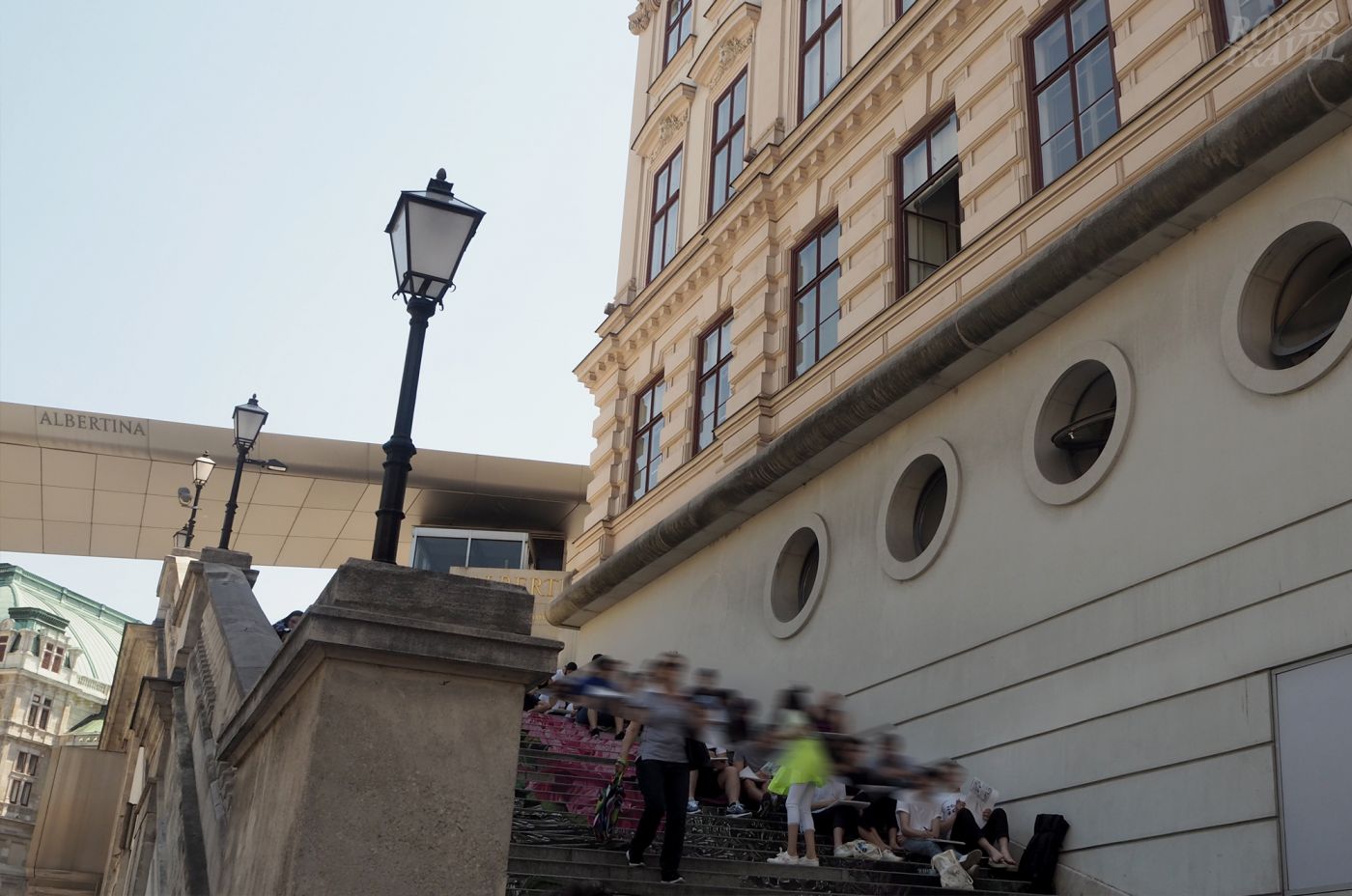 บันไดทางขึ้นไปAlbertinaซึ่งด้านล่างเป็นFilm Museum ช่วงเราไปมีกลุ่มนักเรียนมาสเก๊ตภาพด้วย