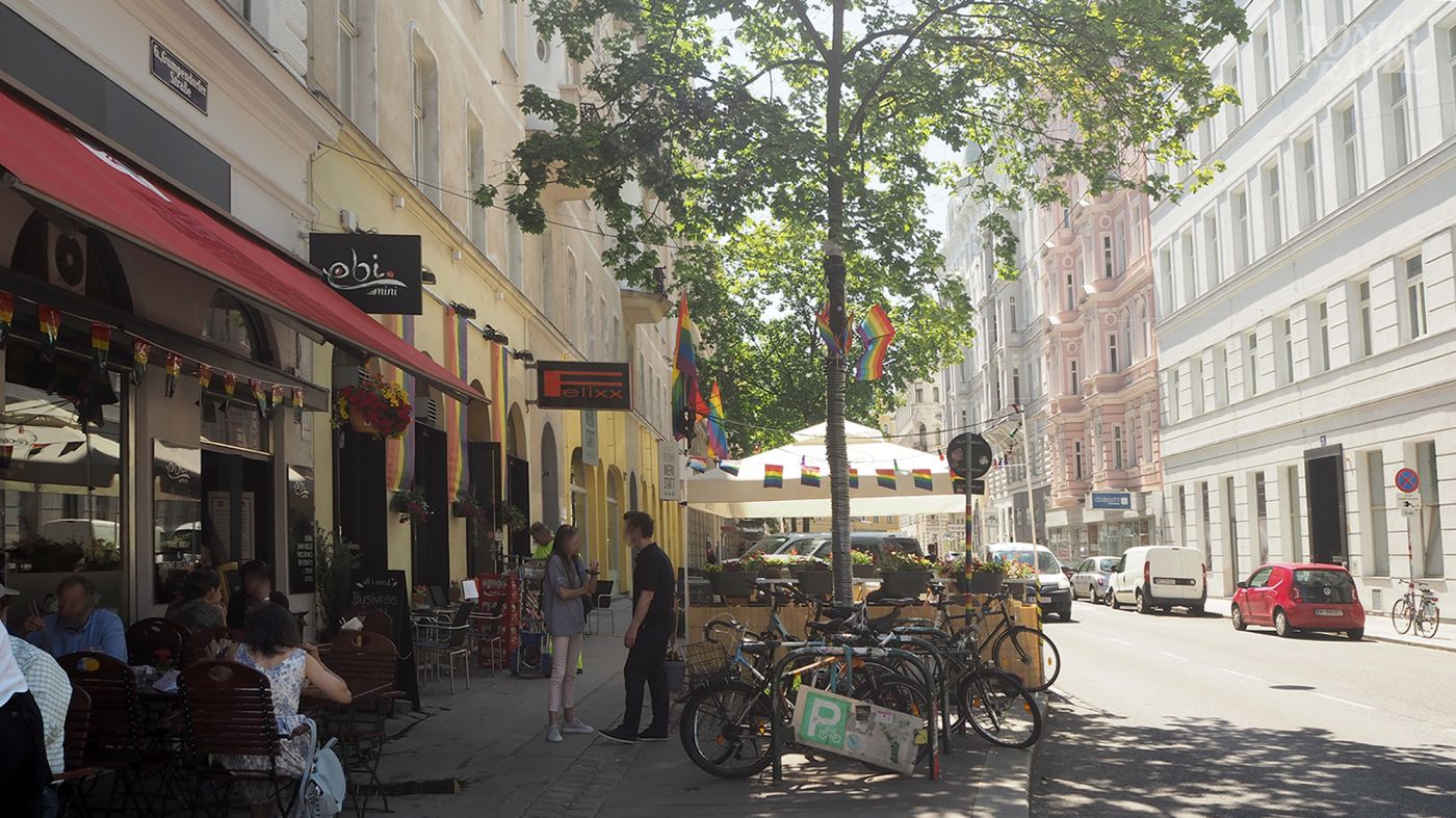ช่วงที่เราไป(เดือน6)คือเดือนของPride จะมีการประดับสีรุ้งบ้าง จริงๆมีร้านตั้งบนฟุตบาทนะแต่ไม่เกะกะทางเดิน
