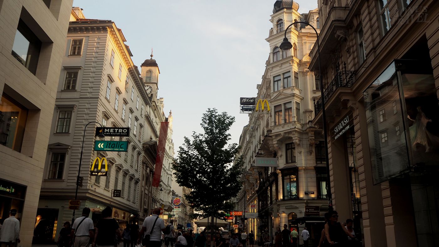 ถนนช็อปปิ้งใกล้ๆโบสถ์ St.Stephen มีร้านค้ามากมายรวมถึงแบรนด์เนมและก็ร้านอาหารด้วย แต่เรามาตอนมืดร้านจึงปิดแล้ว เลยดูบรรยากาศพระอาทิตย์ตกก็เพลินไปอีกแบบ