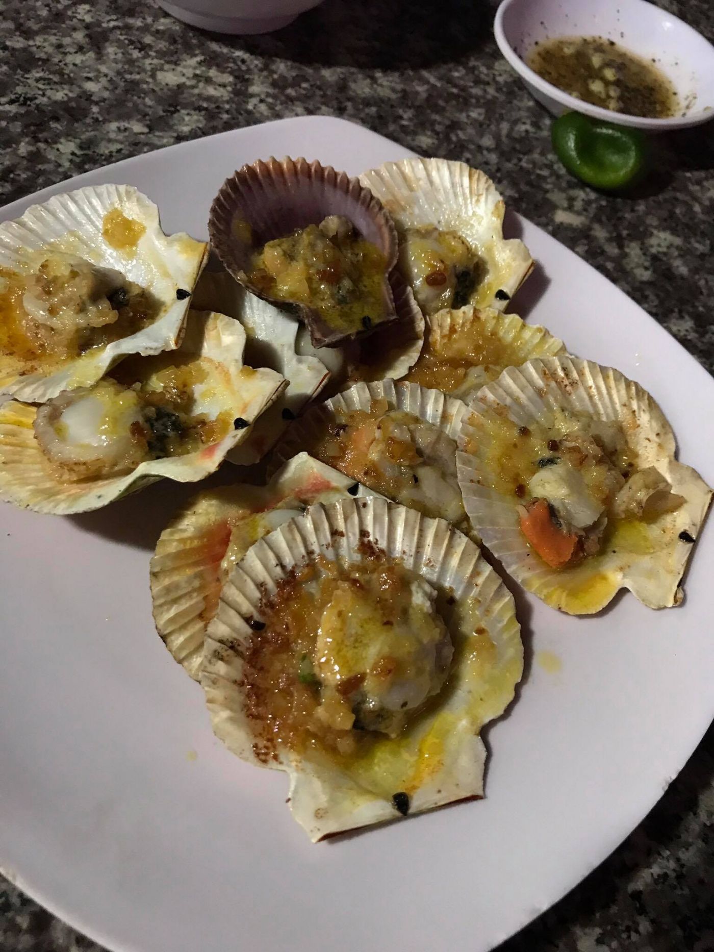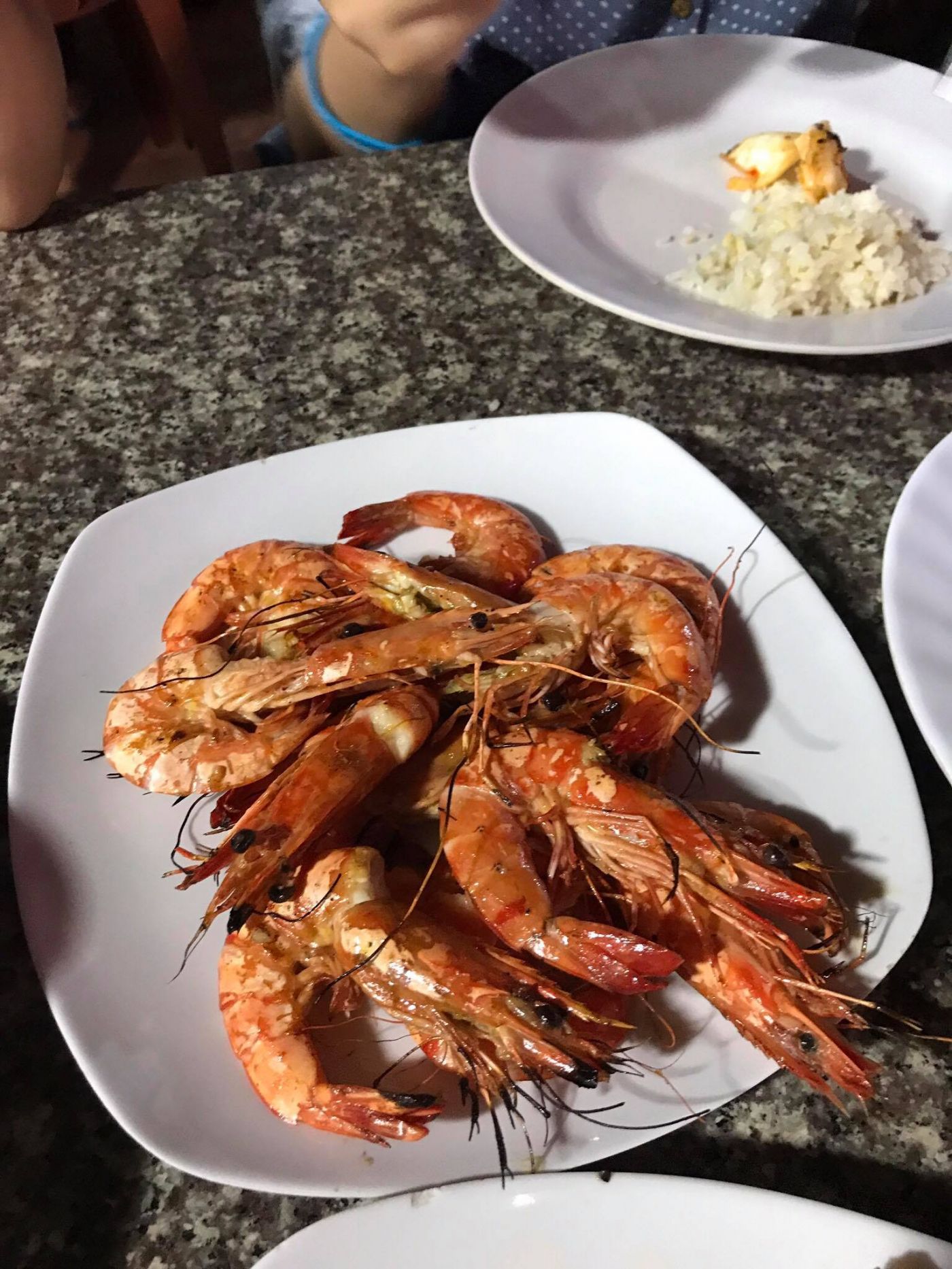 พอตกเย็นแถวๆที่พักมีร้านอาหารเปิดเรียงกันได้หลายร้านอยู่ ค่อนข้างคึกคักแตกต่างกว่าตอนกลางวันมากๆ เราก็เดินไปซักพัก เห็นร้านนี้คนดูเยอะ ข้างหน้าก็ดูมีกุ้งหอยปูปลาโชว์เต็ม เราก็ยืนดูเมนู พอจะถามเค้าว่ามันอะไรยังไง ได้กี่ตัวราคาเท่าไหร่ เค้าก็แบบเชิญด้านในๆ แหม่พี่ แปปสิ ขอหารก่อน พี่ก็จะเชิญเข้าด้านในอย่างเดียว เราก็แบบไม่ว้อยย ตอบชั้นมาก่อน ยืนไปมาจนพี่แกตอบ เราก็ไม่ได้คิดอะไรมากหรอกจริงๆแล้ว หิวแล้วอะ จริงๆก็ถามทำท่าไปงั้นอะ 55555555 อีกอย่างก็ถูกกว่าร้านก่อนหน้าด้วยมั้ง เราเลยเข้าร้านนี้ ร้านเค้าคนเยอะจริง พนักงานก็ดูยุ่งๆ เราก็สั่งไปสี่อย่างก่อน กลัวเยอะเกิน เดี๋ยวจะอิ่ม และนี่ก็คือรูปร่างหน้าตาอาหาร ท้าดาาาา