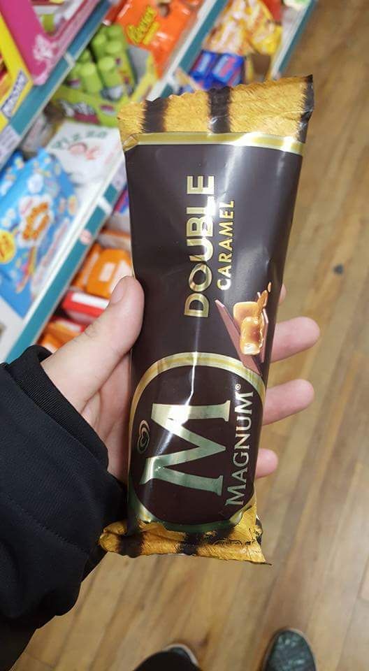 ไอติม double caramel ของ magnum ราคา £1 จากร้าน poundland คือ
