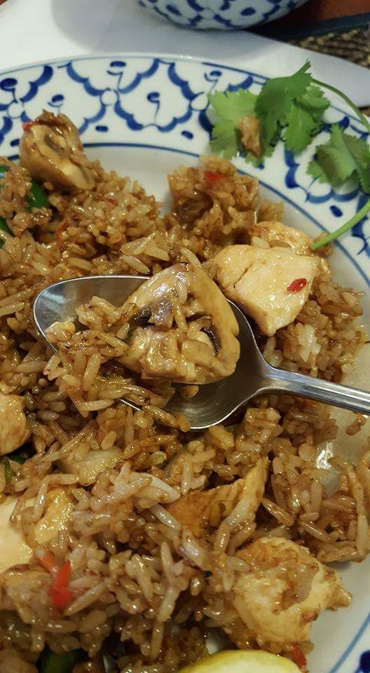 ชอบจานนี้มาก "spicy fried rice with chicken" ราคา £6.50 ต้องสั่งแบบเผ็ดมากนะถึงจะแซ่บถึงอกถึงใจ ชนิดอร่อยปากลำบากตูด????????