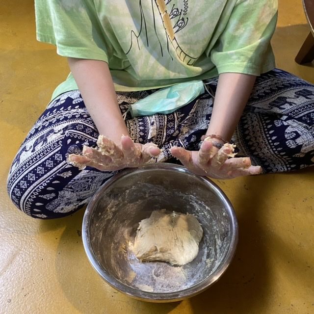 ช่วงนี้ครูแตงโมเริ่มให้ทำสื่อมากขึ้น ดังนั้นในห้าวันก็จะมีประมาณ 2 วันที่เรากับกมลไปโรงเรียนแค่ครึ่งวัน ช่วงนี้เราได้ทำอะไรหลาย ๆ อย่างบางครั้งก็ช่วยสอน ดูแลเด็ก ทำสื่อ และบางครั้งก็เป็นนักเรียนเช่นกัน เพราะเราได้ทำอะไรหลาย ๆ อย่างที่เราไม่เคยทำตอนเด็ก ๆ อย่างเช่นการใช้จอบถางหญ้า ใช้เสียมขุดทำรูใส่ต้นไม้ หรือการทำขนมปัง(รึเปล่า?)