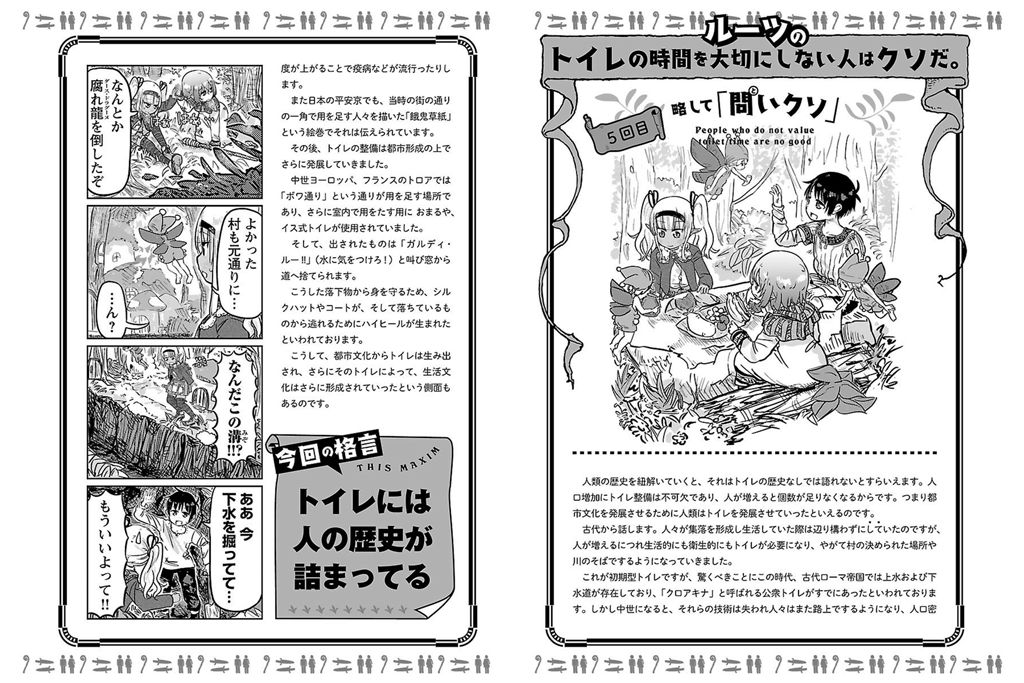 ด้วยเหตุนี้ คราวนี้จึงขอพูดถึงหนังสือการ์ตูนเรื่องหนึ่งที่เพิ่งได้อ่านช่วงอาทิตย์สองอาทิตย์นี้ ที่พระเอกก็เป็นผู้พิถีพิถันเรื่องปลดทุกข์เช่นกัน เจ้าหนุ่มคนนี้จับจดเรื่องสุขามาก ขนาดไปอยู่ต่างโลก มีอะไรแปลกหูแปลกตาให้มองมากมายก็ยังสนใจแต่เรื่องเบ่งวันยังค่ำ หากถามว่าคือหนังสือการ์ตูนเรื่องอะไร...