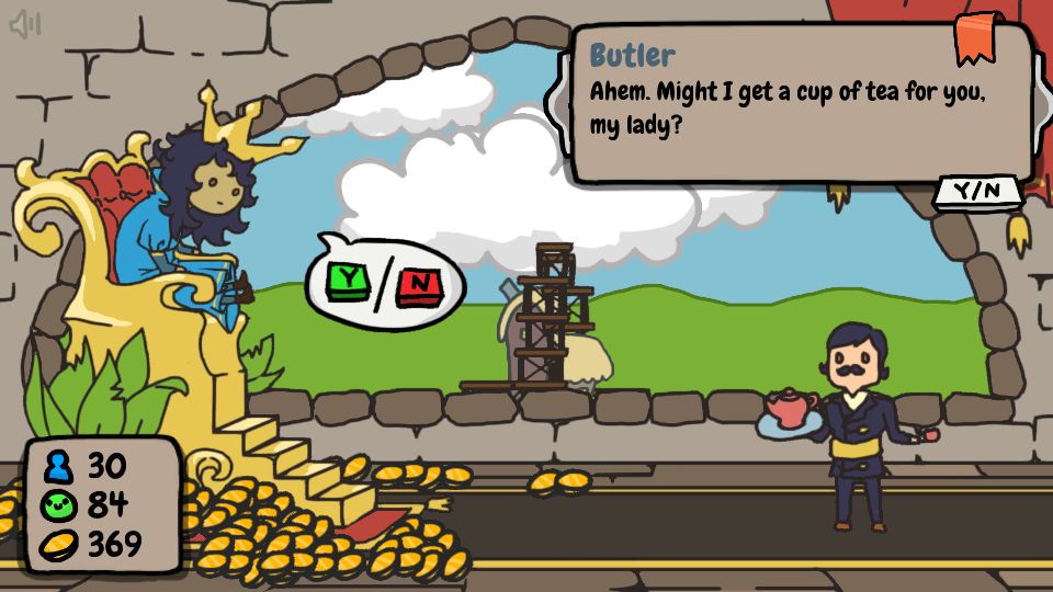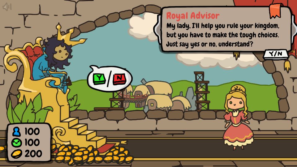 เราเล่นเป็นราชาหรือราชินี (เลือกได้) นั่งอยู่ในท้องพระโรง แต่ละวันจะมีคนมาเข้าเฝ้าแล้วให้เราตัดสินใจว่าเห็นด้วยหรือไม่เห็นด้วย คำตอบอาจมีผลกับค่าความรุ่งเรืองของอาณาจักรในด้านต่างๆ แล้วเมื่อค่าความรุ่งเรืองของอาณาจักรมากพอ เนื้อเรื่องก็จะเดินหน้าไป จนนำไปสู่ตอนจบในที่สุด