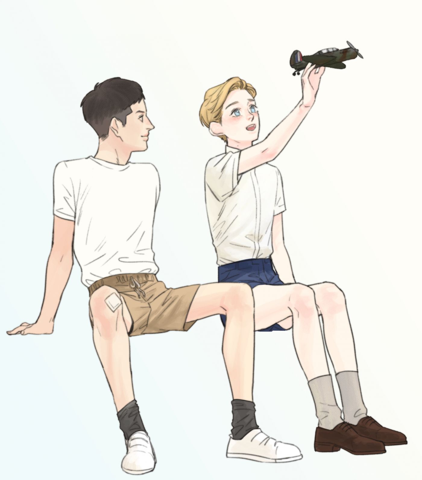 มือของเด็กทั้งสองเกี่ยวก้อยกัน