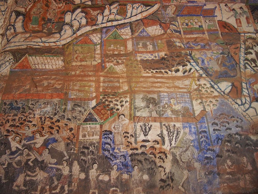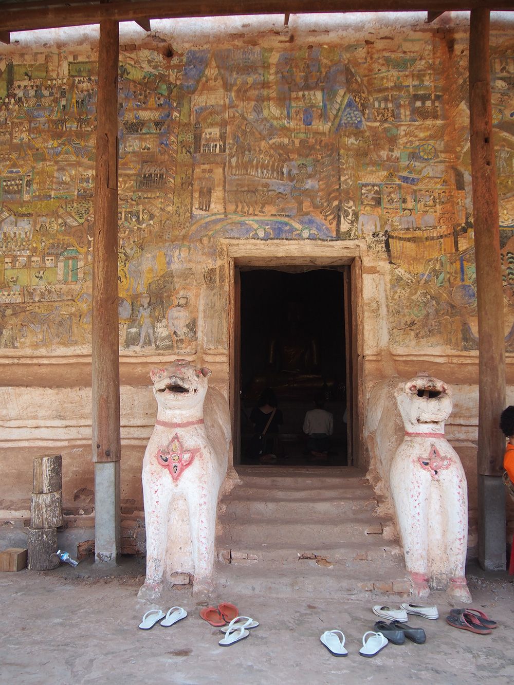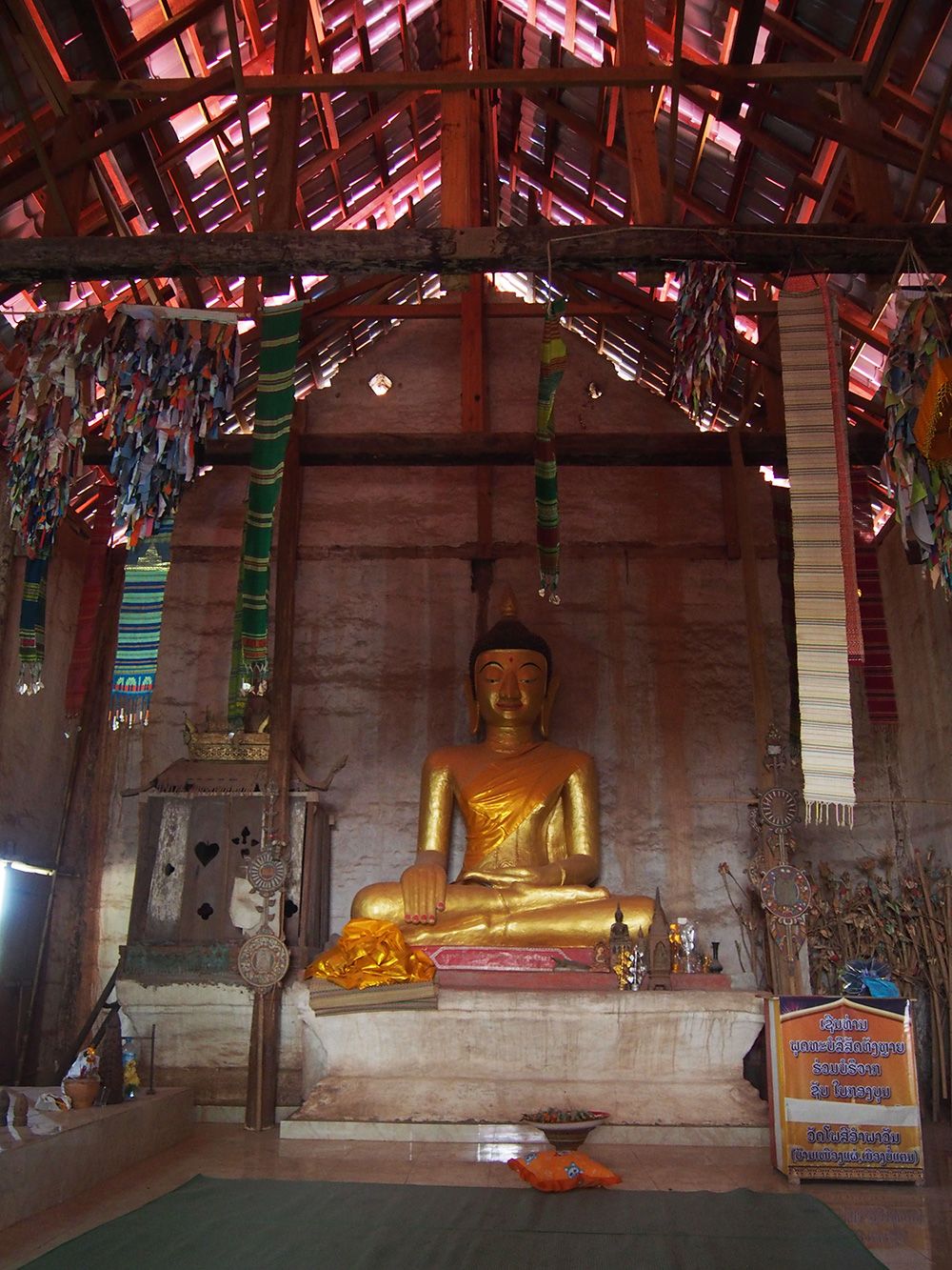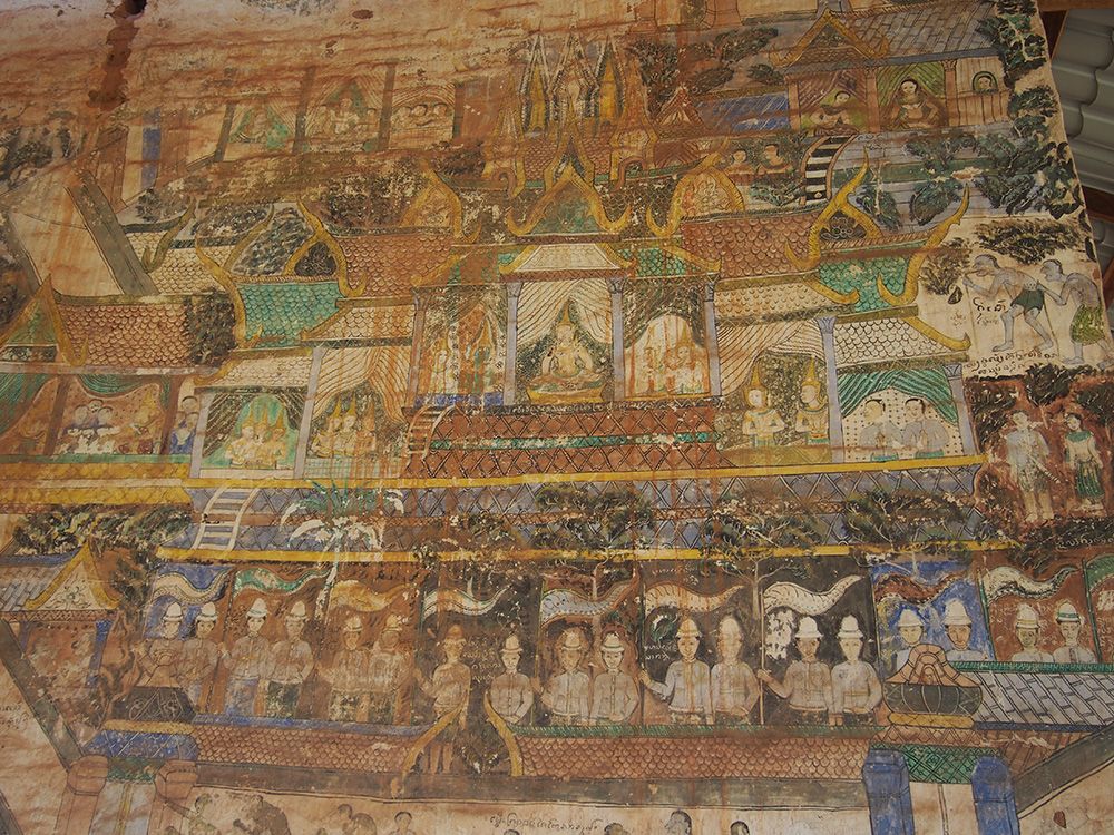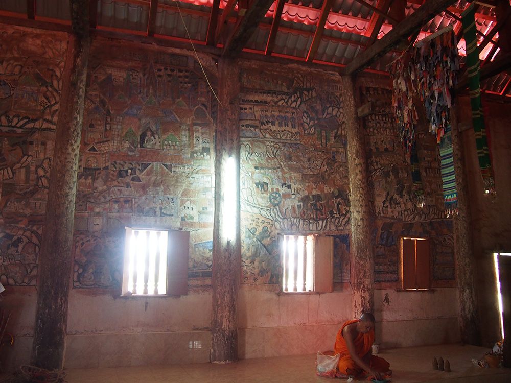 เห็นเขาพูดกันว่าที่นี่เป็นวัดแฝดของไทยด้วย ที่นาแห้วเองก็มีวัดที่คล้ายๆกันกับวัดฝั่งลาว วัดลาวนี้สภาพเก่ามากแต่ก็ยังคงความสมบูรณ์แบบไว้อยู่ ภาพวาดฝาผนังเลือนลางไปเยอะแล้วบางที่ เห็นแล้วรู้สึกถึงความเก่าแก่และความขลังของวัดเก่านี้จริงๆ