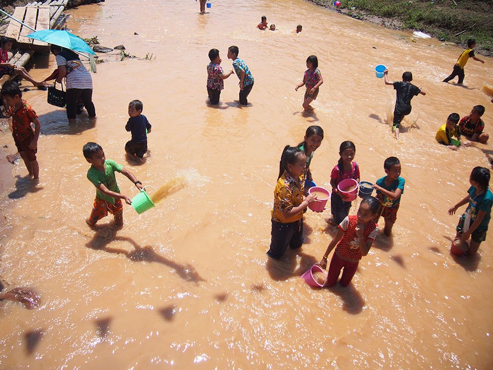 ระหว่างเดินกลับเด็กๆที่อยู่ข้างล่างก็ตักน้ำใส่ถังไว้รอสาดใส่คนเดินไปเดินมาเต็มที่ โชคดี...เอ้ะ หรืออาจะโชคร้ายแค่ยืนอยู่เฉยๆเด็กมันก็วิ่งมาสาดแล้วก็หัวเราะวิ่งหนีไป ฮ่าๆ