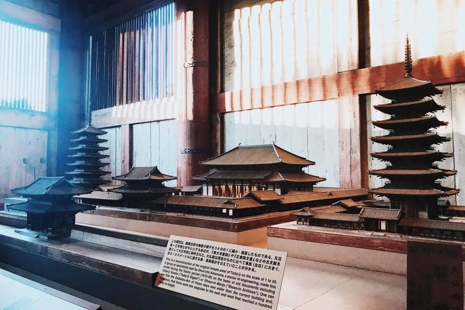 เมื่อก่อนโน้น วัดนี้ใหญ่มากกก แต่ว่าโดนไฟไหม้เสียหายหมด (เพื่อนบอกมา) ที่เราเห็นอยู่ทุกวันนี้เป็น reconstruction ค่ะ มีความใหญ่แค่ 2 ใน 3 (อ้นนี้อ่านป้ายเอา) ของอาคารจริงที่สร้างไว้ในอดีต ถ้าเดินอ้อมไปหลังพระพุทธรูปจะเจอเป็นโมเดลจำลองวัดโทไดจิในสมัยก่อนค่ะ