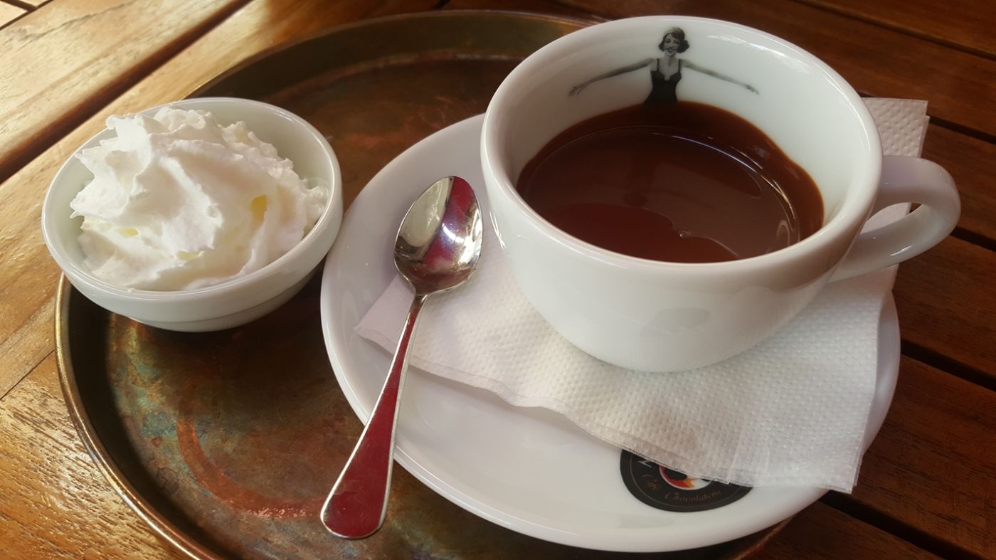 ช็อกโกแลตร้อนถ้วยนี้ของโลมา เพิ่มวิปครีมด้วย ร้านนี้ก็เป็นอีกหนึ่งร้านที่ช็อกโกแลตร้อนข้นมาก