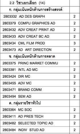 วิชานี้ก็ดีค่ะ เป็นวิชาสร้างสรรค์กลยุทธ์ โดยตอนเรียนก็จะมีทฤษฎีและสอดแทรกตัวอย่างงานโฆษณาที่อิงแต่ละทฤษฎี มีการให้โจทย์ไปคิด execution มา ส่งชิ้นงานบ้าง 2-3 ชิ้น ไม่ยุ่งมาก โจทย์มาจากอาจารย์ ยังไม่ได้รับบรีฟลูกค้า เลยไม่กดดัน แต่ก็ถือว่าได้ลองปฏิบัติค่ะ