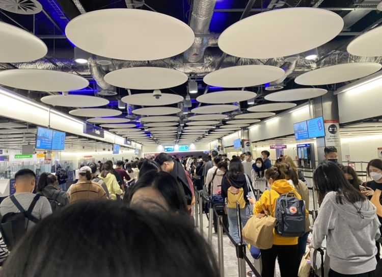 ตม.ที่นี่ในช่วงการระบาดของโควิดมีพนักงานนั่งประจำอยู่แค่ 3 คนคือคิดเป็น 20% ของช่องตม.ทั้งหมด ทุกคนไม่ใส่หน้ากาก ใช้เวลาร่วม 45 นาทีในการรอต่อแถว เมื่อถึงคิวก็จะถูกถามประมาณว่า เรียนที่ไหน มาเรียนกี่ปี มีที่พักหรือยัง บางคนตรวจใบผลโควิด บางคนก็ไม่ตรวจ