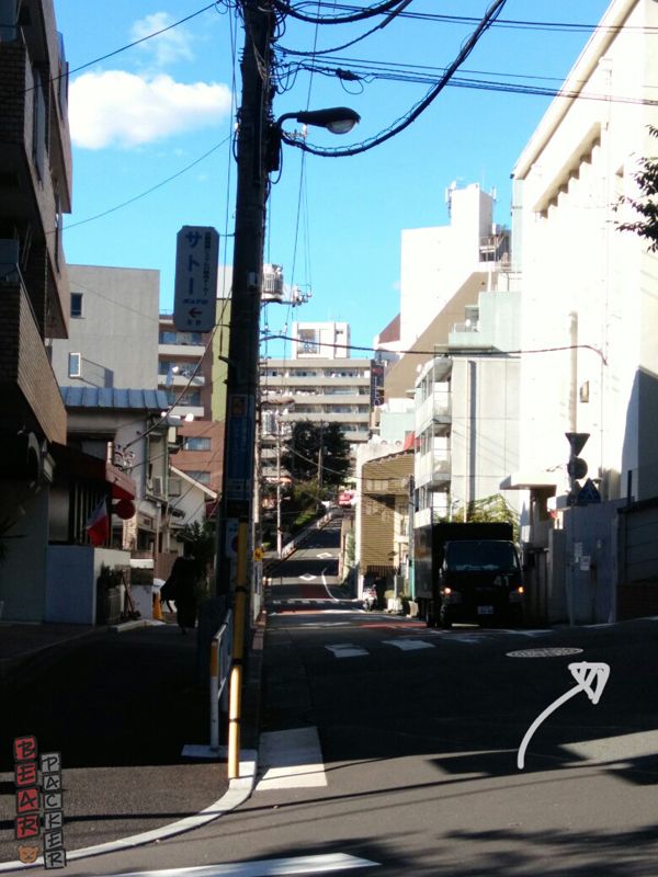โรงแรมนี้อยู่ที่ Meguro นะ ออกสถานีรถไฟ JR Meguro มาเดิน 5-10 นาทีลงเขามาถึงเลยจ้า มาได้หลายทาง ทางที่ชัน(ที่ลูกศรชี้ ชันอย่างกะ 45องศา)กับทางที่ไม่ชันมาก ไม่แนะนำให้วิ่งแม้คนญี่ปุ่นจะขี่จักรยานและขับรถขึ้นลงอย่างกับทางเรียบธรรมดาก็ตาม เพราะอาจจะกลิ้งได้....