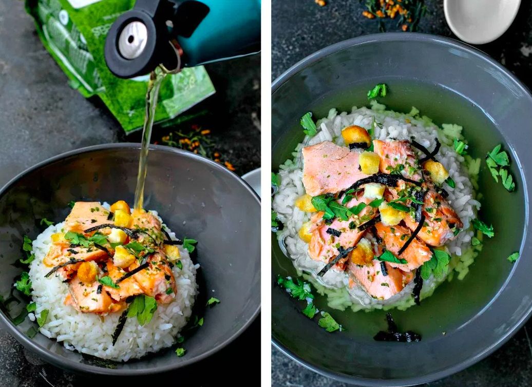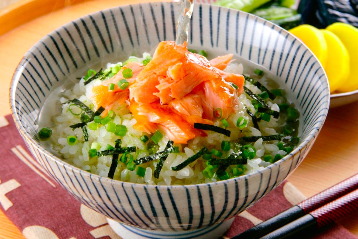 ลองเปลี่ยนสไตล์อาหารเช้ามาเป็นอาหารญี่ปุ่นแบบนี้ดูครับ คืนก่อนหน้าก็ให้ซื้อเนื้อแซลมอนเก็บไว้ พอถึงเวลาเช้า เพื่อนๆก็เอามาหั่น แล้วผัดในกระทะไฟอ่อนๆจนสุกตามชอบ เสร็จแล้วนำชิ้นปลาแซลมอน มาวางบนข้าวที่หุงไว้ แล้วก็ชงชาเขียวหรือต้มน้ำซุปบะหมี่ เทลงไป โรยสาหร่ายอีกนิดหน่อย ก็ได้รับประทานอาหารญี่ปุ่น Ochazuke ร้อนๆให้ชื่นใจเป็นมื้อเช้ากันแล้วล่ะครับ