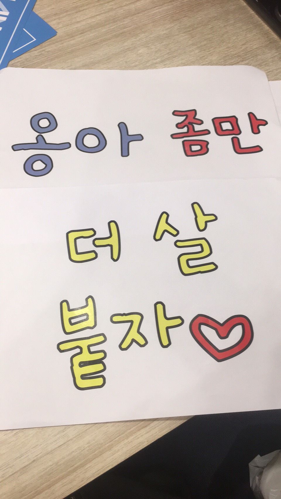 ตอนแรกเราถือป้าย(A4ที่ปริ้นเอง)ว่า 옹아~날씬해진거 노노해! (องอ่า อย่าผอมไปมากกว่านี้เลย)