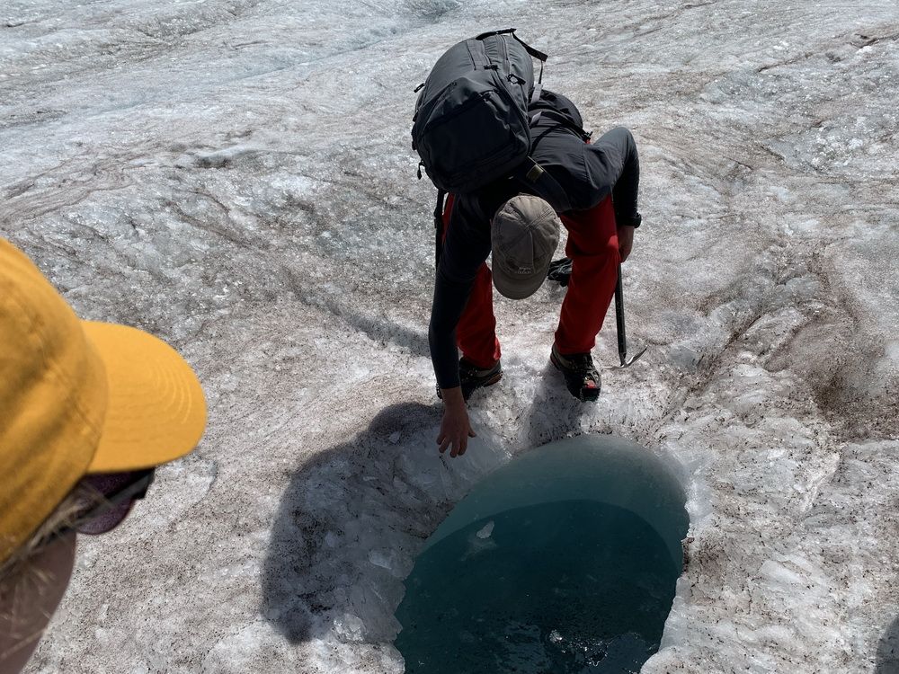 พอเดินไปถึงจุดหนึ่งจะเจอท่อปักในน้ำแข็ง ไกด์บอกว่าเอาไว้วัดความหนาของหิมะ