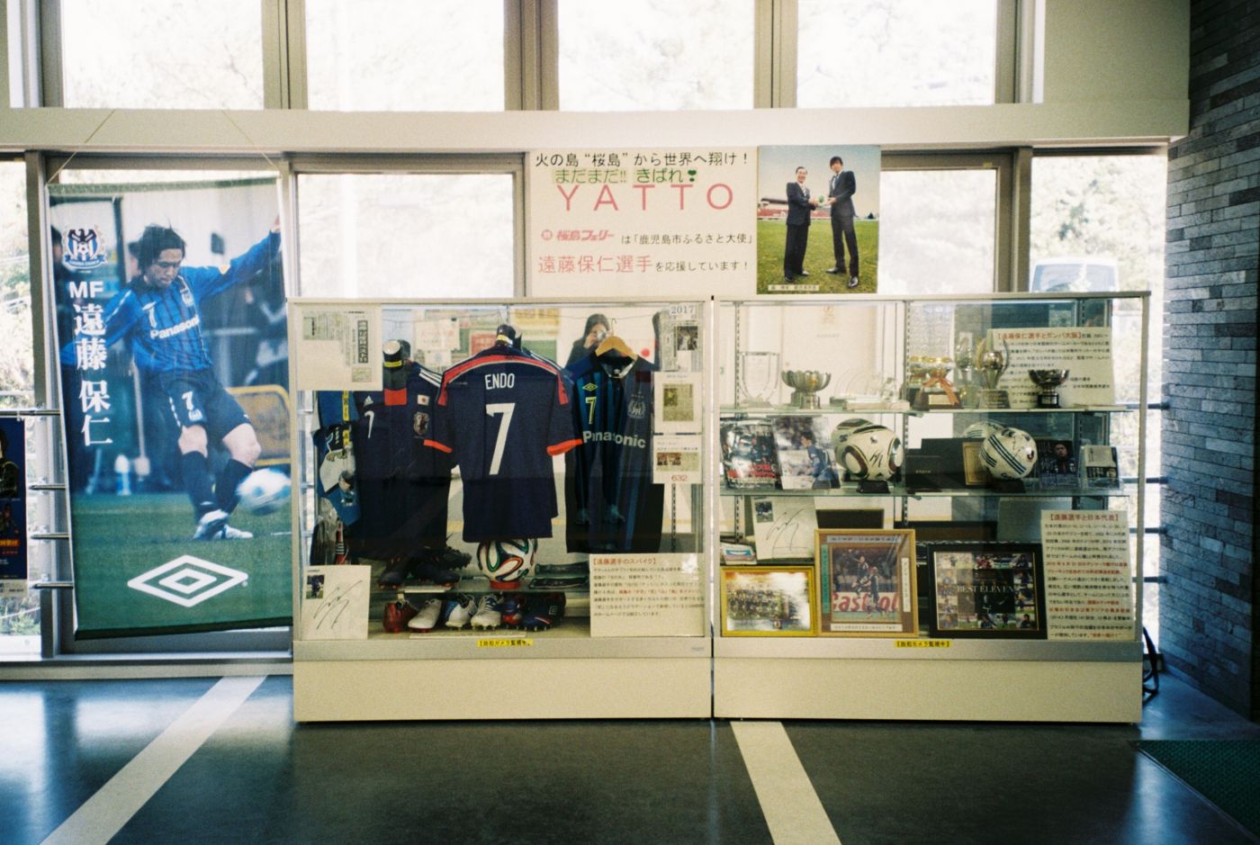 พอถึงฝั่งซากุระจิมะ เดินเข้ามาในตัวอาคารของท่าเรือก็เจอรูปและข้าวของเกี่ยวกับอดีตนักฟุตบอลทีมชาติ Endo Yasuhito ตอนก่อนจะมา ได้ยินจากแม่ว่าเขาเป็นคนเมืองนี้ และดูชาวเมืองจะภาคภูมิใจมาก ๆ เห็นจากการตั้งป้ายไว้ตรงทางเข้าเลย