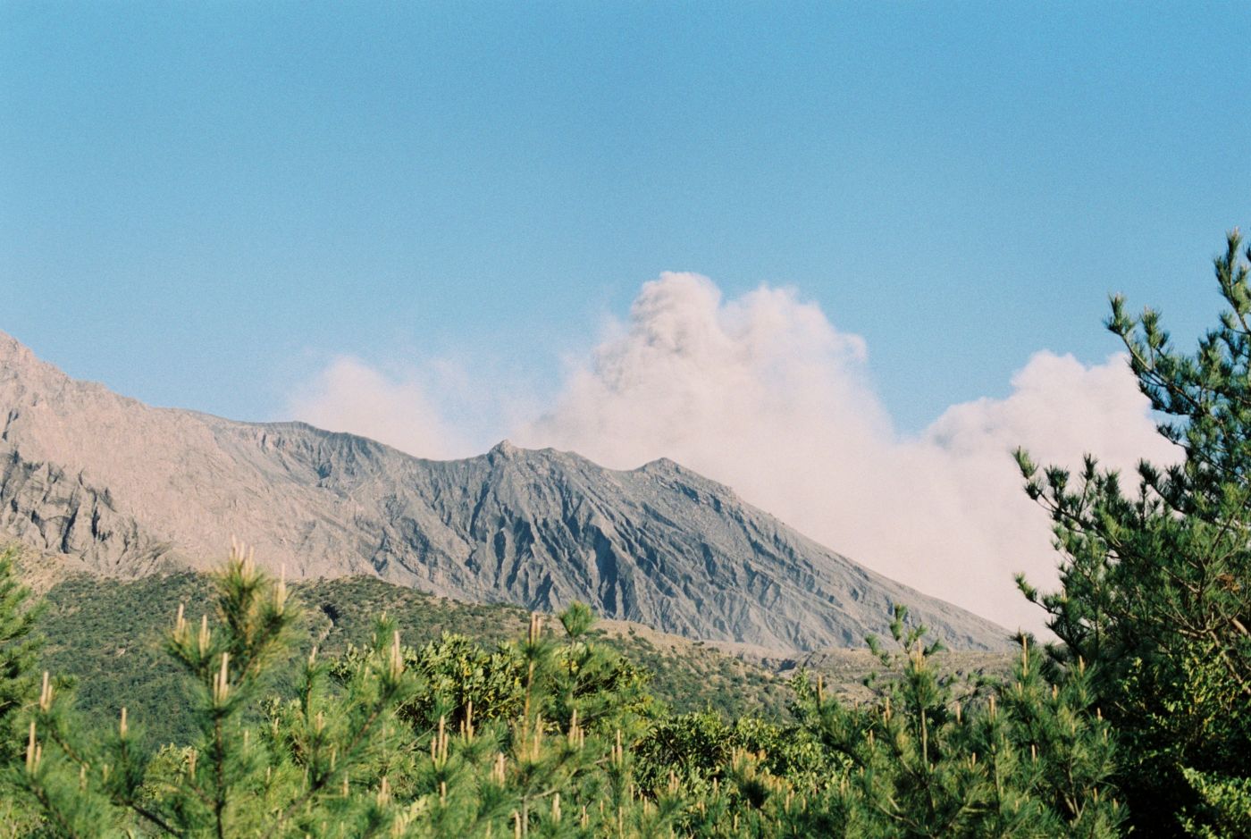 เราเดินมานั่งตรงฝั่งหัวเรือ เห็นภูเขาไฟซากุระจิมะอยู่ตรงหน้า