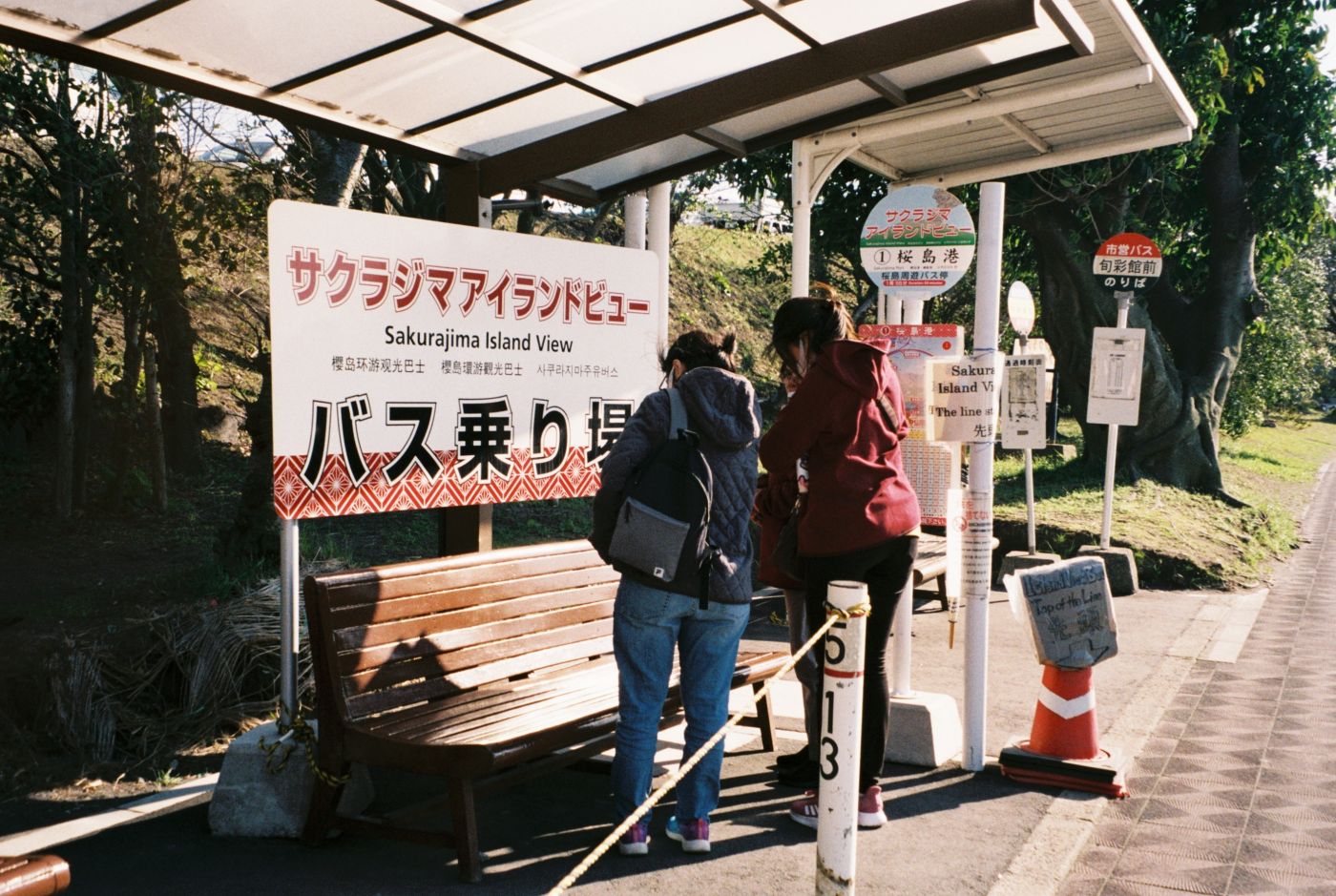 ภายในรถบัสก็หน้าตาปกติ ไม่มีอะไรแตกต่างจากบัสในเมือง และจากการที่มันเป็นบัสเที่ยวสุดท้าย เลยทำให้ไม่สามารถลงตามจุดต่าง ๆ ที่จอดแล้วเดินเที่ยวก่อนจะขึ้นบัสรอบต่อไปเที่ยวต่อ แม่ดูผิดหวังหน่อย ๆ แต่ด้วยเวลาที่มีจำกัดแม่ก็ดูยอมเข้าใจได้ ซึ่งตอนที่รถบัสเวียนบนเกาะเราก็เผลอหลับ ตื่นมาอีกทีคือตอนถึง Yunohira Observatary ซึ่งเป็นจุดสังเกตการณ์ภูเขาไฟ ตรงจุดนี้รถบัสจะจอดให้ประมาณ 10-15 นาที