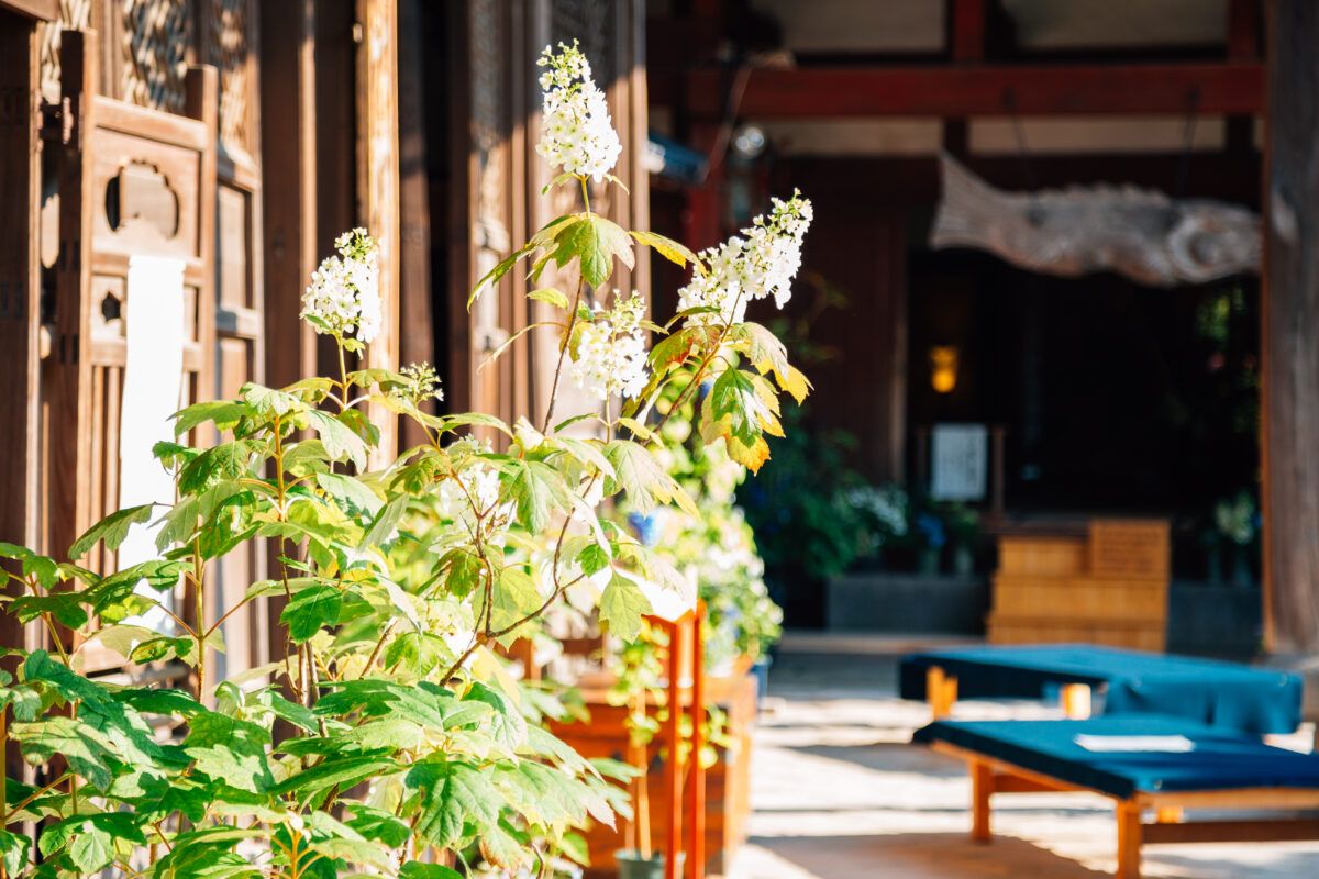 ถ้ามาช่วงฤดูใบไม้ร่วง เราจะเห็นเหล่าต้นเมเปิลที่ขึ้นเรียงรายตามทางพร้อมใจกันผลัดใบเป็นสีแดงด้วยล่ะ โดยจุดชมวิวที่อยากแนะนำคือศาลเจ้าเมียวเก็งงุ (Myokengu Shrine)
