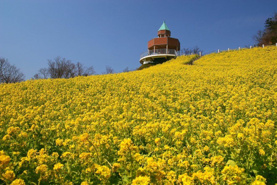 สำหรับความพิเศษของที่นี่เห็นจะเป็นดอกเรปซีด (Rapeseed) สีเหลืองสดใสที่ผลิบานต้อนรับฤดูใบไม้ผลิ และดอกดาวกระจาย (Cosmos) ที่จะเริ่มแย้มเกสรเมื่อเข้าสู่ฤดูใบไม้ร่วง