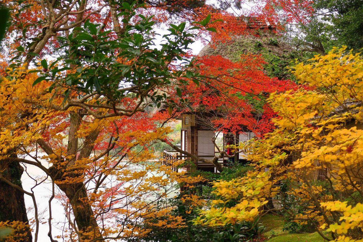 บริเวณอาคารหลักมีชื่อเรียกว่า การิวอิน (Garyu-in) เป็นบ้านหลังใหญ่ที่มุงหลังคาด้วยใบจาก ภายในตัวบ้านก็ประดับประดาด้วยงานอาร์ตสวยๆเต็มไปหมด~ นอกจากนี้ยังมีสวนกับบ้านน้ำชาหลังเล็กที่อยู่ด้านหลังของอาคารหลัก ซึ่งส่วนของบ้านน้ำชาจะไม่เปิดให้นักท่องเที่ยวเข้าชม