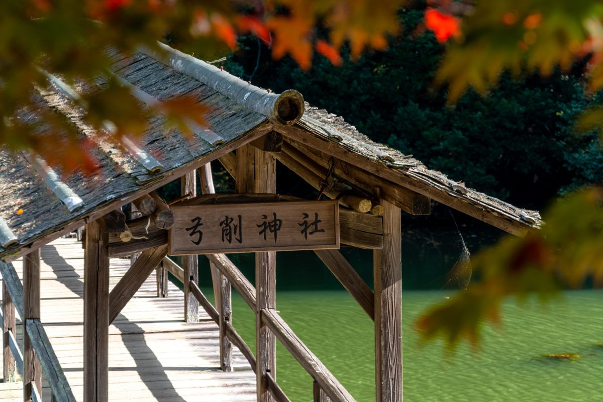 ความจริงแล้วจะเรียกว่าที่นี่เป็นอีกหนึ่ง Unseen ที่น่าไปโดนของเอฮิเมะเลยก็ว่าได้ เพราะสิ่งที่เป็น Unseen ได้เลยก็คือทัศนียภาพอันแสนงดงามของสะพานไทโกะบาชิ (Taiko Bashi Bridge) ที่อยู่เหนือสระน้ำยูเกะ (Yuge Pond) นั่นเอง ทั้งนี้สะพานไทโกะบาชินับเป็นทางเข้าของศาลเจ้าแห่งนี้ โดยทุกๆปีจะมีนักบวชเข้ามาสักการะและทำพิธีอธิษฐานให้ปีนั้นๆเป็นปีที่ดีของการเก็บเกี่ยว