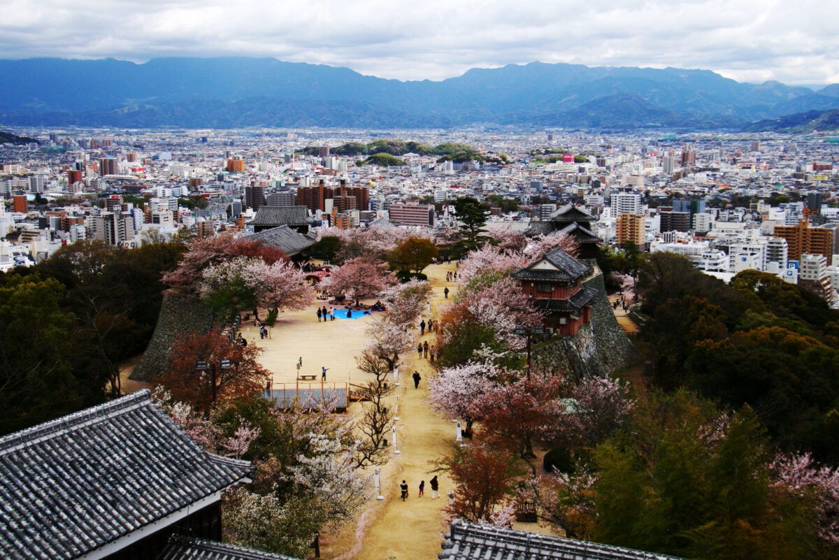 ปราสาทมัตสึยามะ (Matsuyama Castle) เป็น 1 ใน 12 ปราสาทดั้งเดิมที่รอดพ้นจากการทำลายโดยสงครามในช่วงก่อนเข้ายุคเมจิ อีกทั้งยังเป็นปราสาทที่ตั้งอยู่บนเนินเขาสูงชันใจกลางเมืองอย่างภูเขาคาสึยามะ (Mt. Katsuyama) หากมองจากจุดชมวิวบนปราสาทก็จะมองเห็นทะเลในเซโตะที่กว้างไกลสุดลูกหูลูกตา นอกจากนี้บริเวณรอบๆปราสาทยังมีต้นซากุระด้วย~ ถ้าใครอยากมาชมดอกซากุระที่แสนน่ารักก็มาได้ตั้งแต่ช่วงปลายเดือนมีนาคมถึงเดือนต้นเมษายนนะ