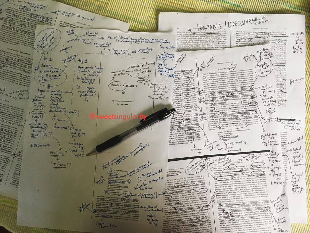 ในบทละคร กาเมลสังเกตว่า อกาเม็มนอนเปลี่ยนไปขณะพยายามตัดสินใจหาทางเลือก เขาไม่มีสติมั่นคง ใจโลเล และ พยายามที่จะโกหกปิดบังครอบครัวตัวเอง เพราะมองตัวเองว่าไร้ทางเลือก และถูกคนรอบข้างกดดันให้ตัดสินใจ ในสิ่งที่ไม่อาจปฏิเสธได้ อกาเม็มนอนโอดครวญอีกว่า "ข้าใช้คำโกหกเหล่านี้กับภรรยา!" ("I used these lies on my wife." วรรค 104) แม้แต่เมเนเลอุสก็ติใจอันโลเลของพี่ชายว่า "หัวใจที่โลเล ดวงที่มิตรสหายไม่สามารถพึ่งพาได้ ย่อมเป็นสิ่งที่ไม่สมควรมี" ("A fickle heart, one that your friends can't depend on, is an unworthy thing to have." วรรค 333-334) ทำให้เรานึกถึง Fig. 2 ภาพโปรโมทรูปกายวิภาคของหัวใจ