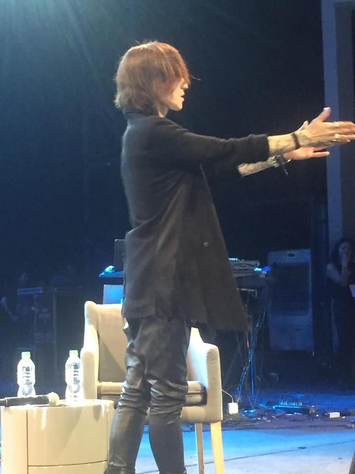 พอคุณSUGIZOให้สัมภาษณ์จบ เขาก็บอกกับทุกคนว่า "ผมได้ทำพลาดอะไรบางอย่างกับทุกคนในวันนี้"และเขาก็ล้วงโทรศัพท์ขึ้นมากับทุกคนล่ะบอกว่า "ผมลืมเซลฟี่กับทุกคน"เท่านั้นแหละค่ะ เรานี่วิ่งหน้าตั้งเข้าเฟรมให้ได้ ตอนคอนเสริ์ตLuna Seaฉันก็พลาดแล้ว รอบนี้ต้องอยู่ในเฟรมให้ได้ พยายามไปหน้าสุดของเวที และพยายามเข้าเฟรม สักพักก็มีคนตามหลังมาและแตะไหล่ฉันแล้วเขาบอกว่า "เขาเกาะหน่อยๆ" เราพยายามย่อตัวเพื่อแบ่งปันให้คนข้างหลัง แบบด้วยความรน "ค่ะๆ"เรารีบตอบแล้วพยายามเข้าเฟรม ไม่รู้ว่าจะติดหน้าเราไหมจะรอดูรูปตอนคุณSUGIZOโพสต์ล่ะกัน