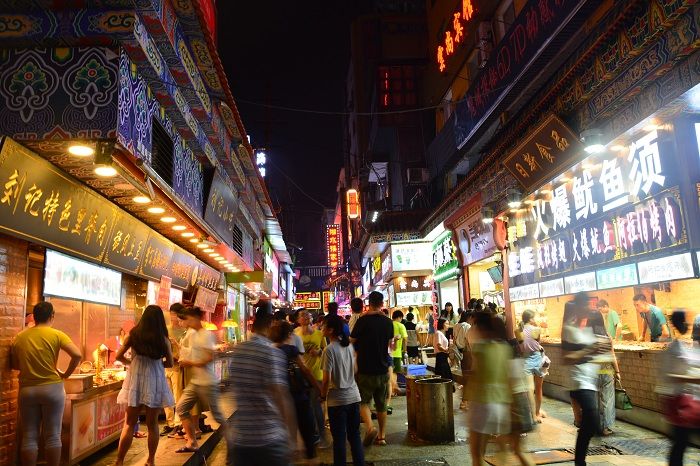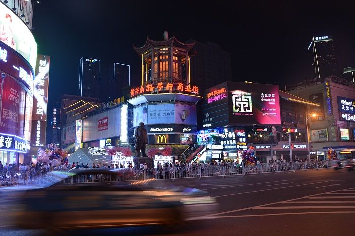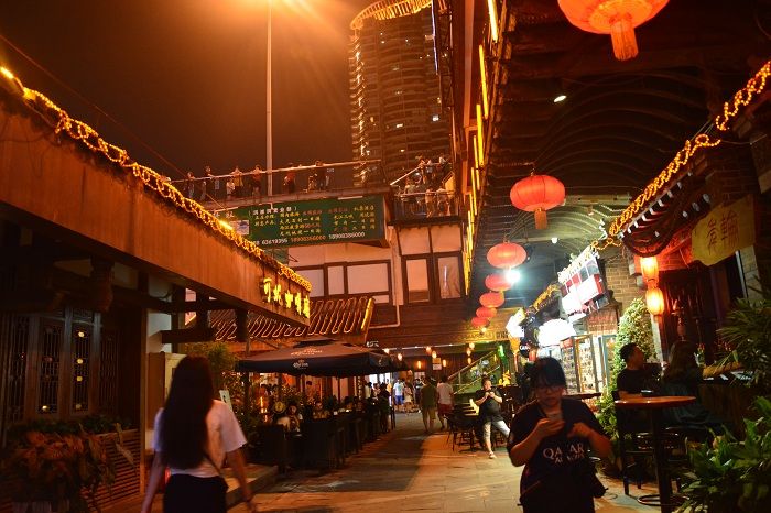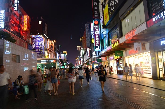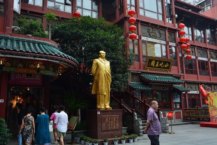 ที่นี่ถือว่าคึกคักมากกกกเพราะมีทั้งร้านอาหาร มีทั้งร้านเสื้อผ้าวัยรุ่น บลาๆมากมายย แสงสีตลอดทั้งเส้นถนนยาวเช่นกัน ก่อนเข้าเราจะเห็นรูปปั้นของท่านประธานเหมาของหน้านิ แต่พอเริ่มประมาณ4ทุ่มร้านรวงต่างๆก็เริ่มเก็บของแล้ว