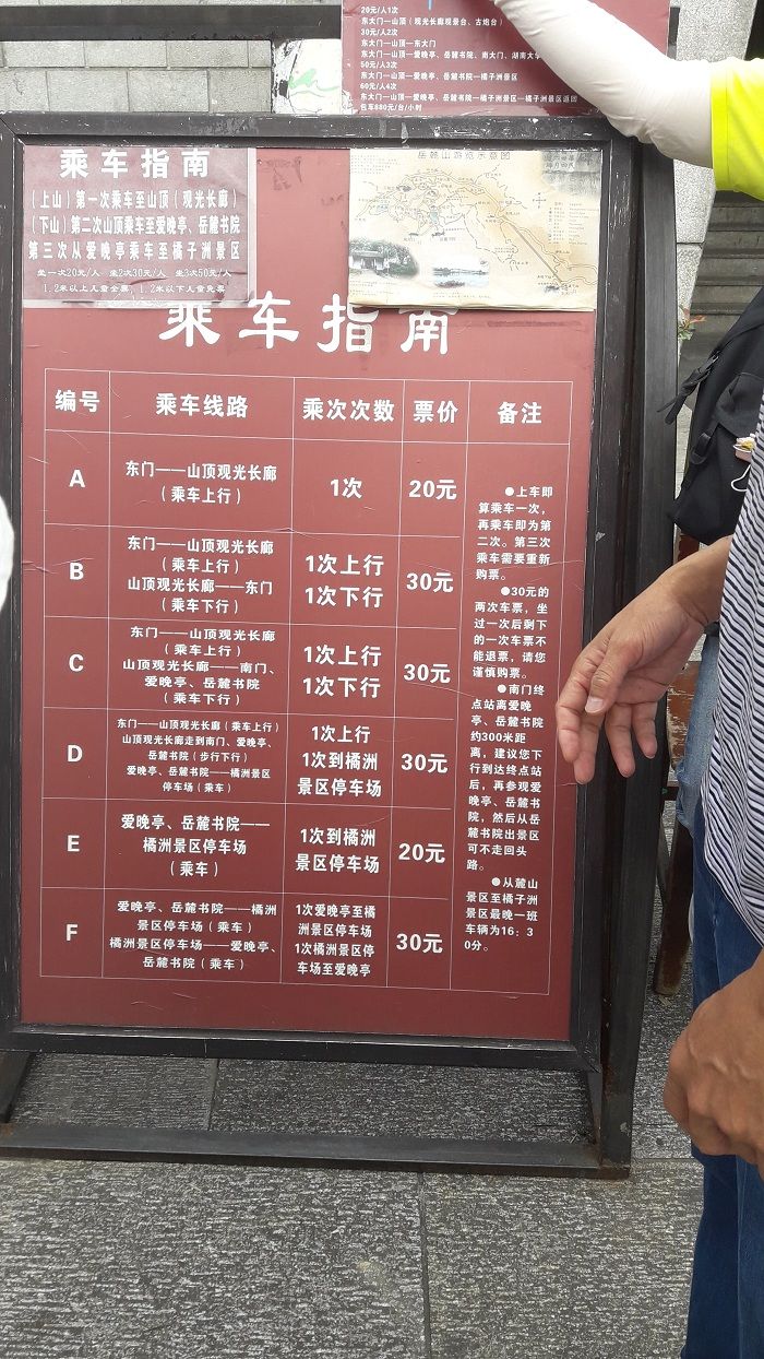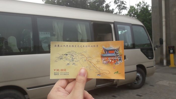 ค่าเข้า : ไม่มี แต่มีบริการนั่งรถขึ้นเขามีแบบขึ้นรอบเดียว 20หยวน กับรอบไปกลับ 30หยวน แต่ตอนเราซื้อเจ้าหน้าที่ถามเราว่าไปเกาะส้มมายัง ถ้ายังแนะนำให้ซื้อแบบ30หยวนเพราะสามารถนั่งรถไปเกาะส้มได้ด้วย ซึ่งรถไปเกาะส้มจะอยู่South gate 南大门 พอถึงประตู南大门 ให้เดินเลี้ยวซ้ายไปจะเจอป้ายบอกลานจอดรถ ขึ้นตรงนั้นเลยยย รถจะเป็นมินิบัสสีทองมีป้ายข้างหน้าเขียนว่า 橘子洲