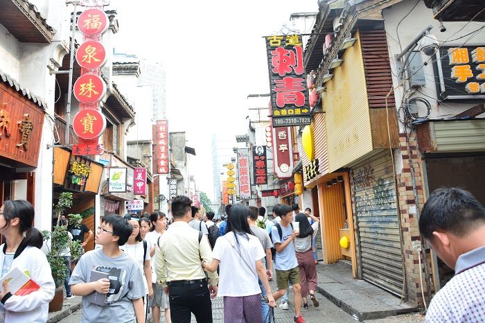 ถนนไท่ผิงเป็นถนนคนเดินสายเล็กๆไม่ยาวมากแต่คนเยอะมากกกก ที่นี่มีร้านจำพวกminisoเยอะมากกก ของเยอะของสวยและน่ารักมาก อาหารที่ขึ้นชื่อเว่อร์ๆ ที่แบบเห้ยคนฉางซาเดินถือกันเยอะมากคือ 臭豆腐 เต้าหู้เหม็น กับไส้กรอกยักษ์ 大香肠