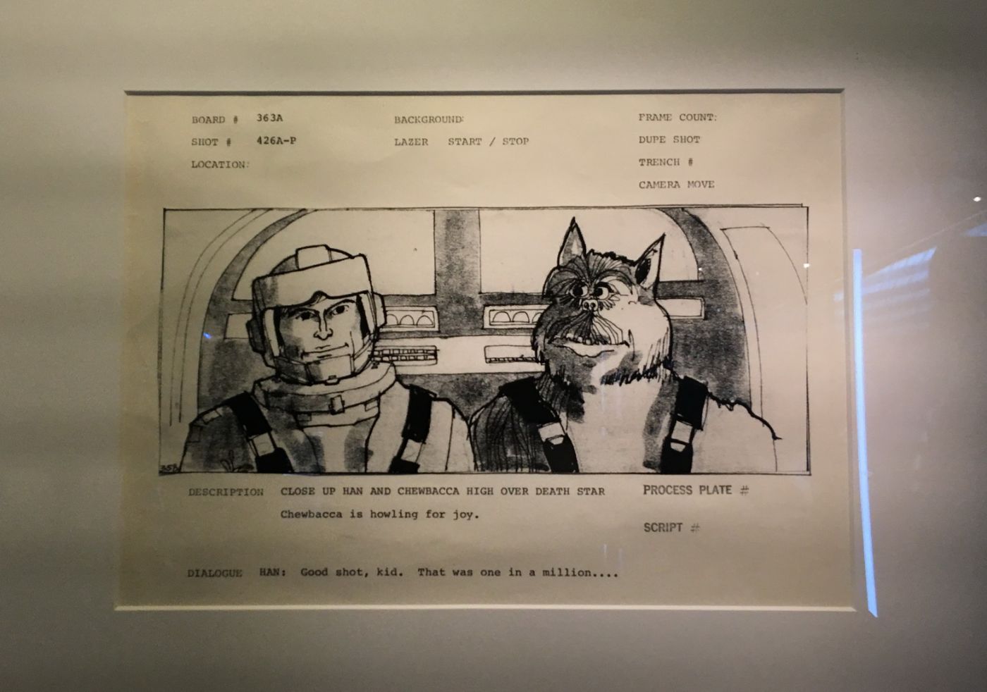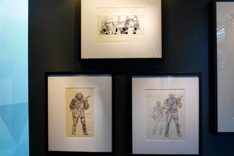 นอกจากงานที่ใช้จริงในหนัง เขาก็เอางานที่ไม่ได้ใช้มาโชว์ด้วยเหมือนกัน ได้เห็นงานสเก็ตแรกๆของฮาน โซโลกะชิวอี้ก็ได้แต่แอบขำ แต่มันก็น่ารักดีนะ 555