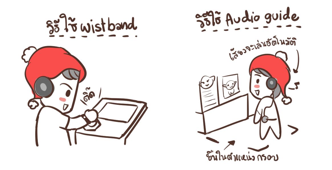 ในงานจะมีจุดให้เราไปยืนพร้อมใส่หูฟัง เมื่อไปยืนตรงจุดๆนั้น ก็ Audio Guideเล่นให้ฟังโดยอัตโนมัติ (เจ๋งง่ะ) เล่าเรื่องราวต่างๆ ของตัวละคร ไปถึงงานออกแบบแต่ละตัวละคร และตัว ริชแบรนด์ ที่เขาให้เราร่วมสนุกโดยการใช้ wistband แปะตามจุดต่างๆ ในแต่ละโซน เพื่อสร้างตัวเจไดของเราเองไล่ตั้งแต่ตอนแรก ชื่อ, เผ่าพันธ์,พลัง และ เลือกอาจารย์ผู้สอนได้ด้วย