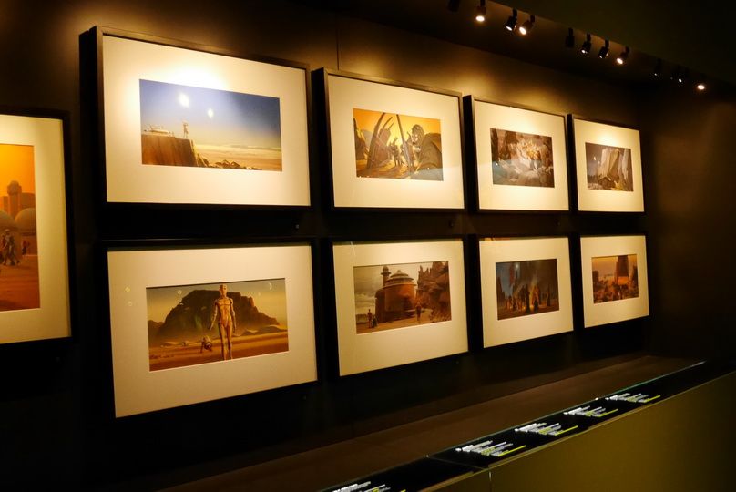 ส่วนด้านในจะมีงานแสดงตั้งแต่รูปสเก็ตออกแบบตัวละครต่างๆ, ชุดที่นักแสดงไว้ใช้ถ่ายทำจริง และโมเดลที่ใช้จริงในหนังภาค 1-6 เรียกได้ว่าจัดเต็มเลย (ส่วนภาค the force awakenจะมีนิดๆหน่อยๆค่ะ )