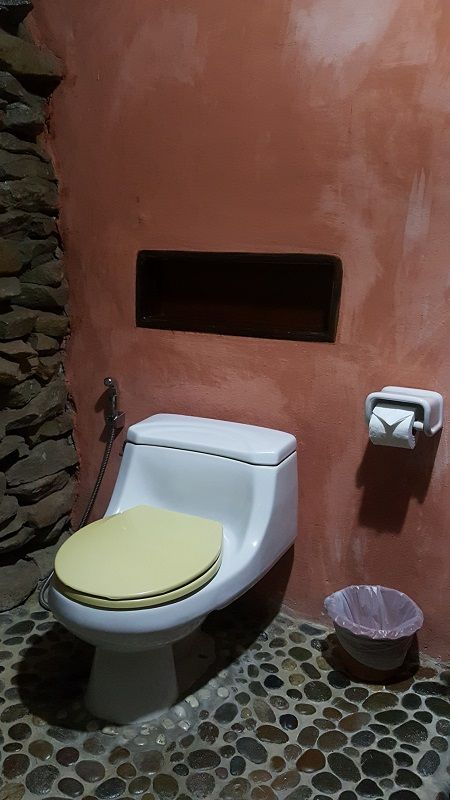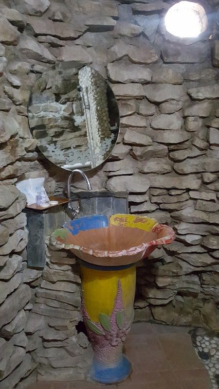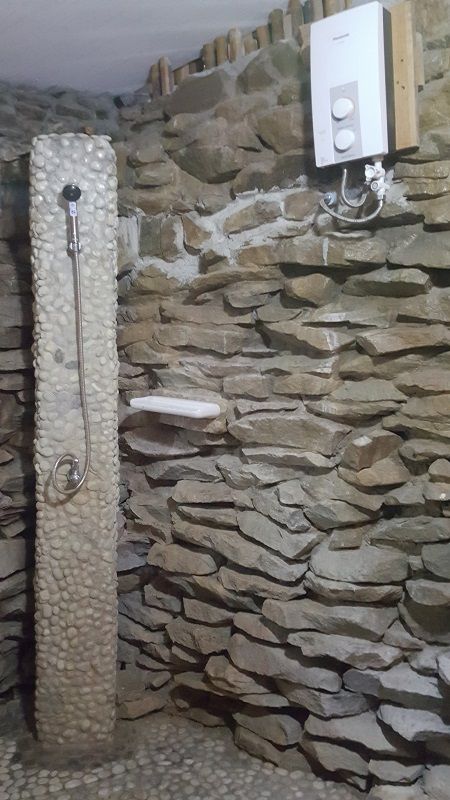 ผนังห้องน้ำให้ความรู้สึกธรรมชาติ เหมือนอยู่ตามป่าเขาลำเนาไพร