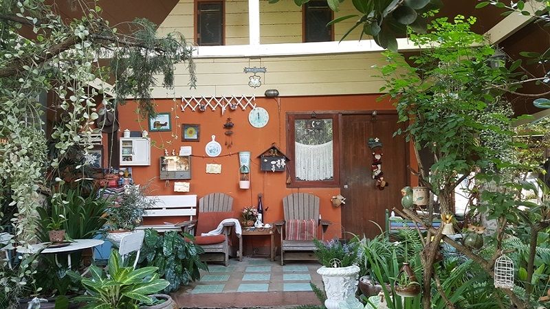 หน้าบ้านมีที่ให้นั่งเล่นชมนกชมไม้ด้วยนะจ๊ะ