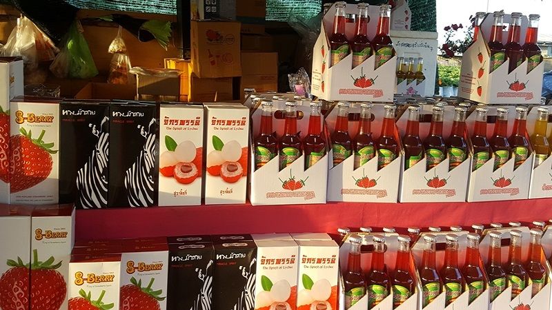 ร้านไม่ไกลจากไร่สตรอว์เบอร์รี่ อยู่ฝั่งเดียวกัน