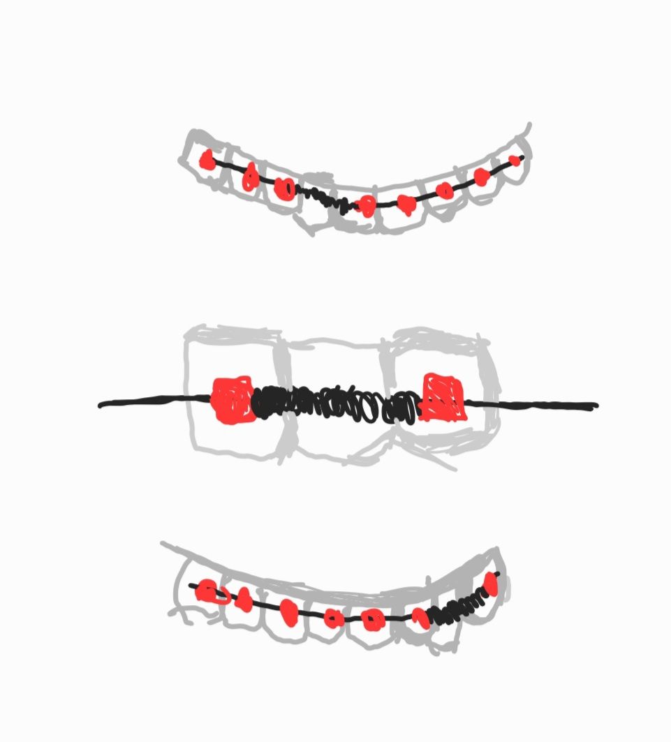 และได้ยินคุณหมอสั่งสปริง.... ในใจคือแบบ ติดเลยหรอออ นึกว่าจะนานกว่านี้ซะอีก ก็วัดสปริงเพื่อติดสปริงบนลวดระหว่างฟันซี่ที่ซ้อนด้วย เพื่อดันให้มีช่องว่างพอที่จะดึงซี่นั้นออกมา หน้าตาสปริงคือแบบนี้ร้อยเข้ากับลวดเกี่ยวกับแบร๊กเก็ต 2 อัน