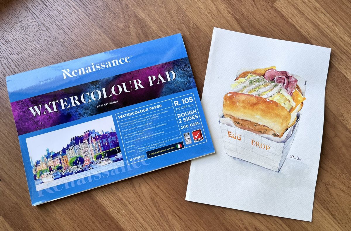 บนปกเขียนว่าผิวหยาบ ความหนา 200 แกรม แต่ถ้าเทียบกับพวกกระดาษ Artist Grade จะถือว่าค่อนข้างเรียบเหมือนพวก Cold Press มากกว่า