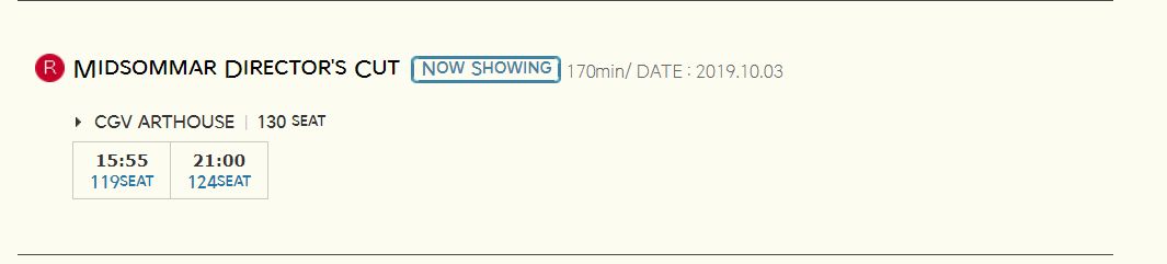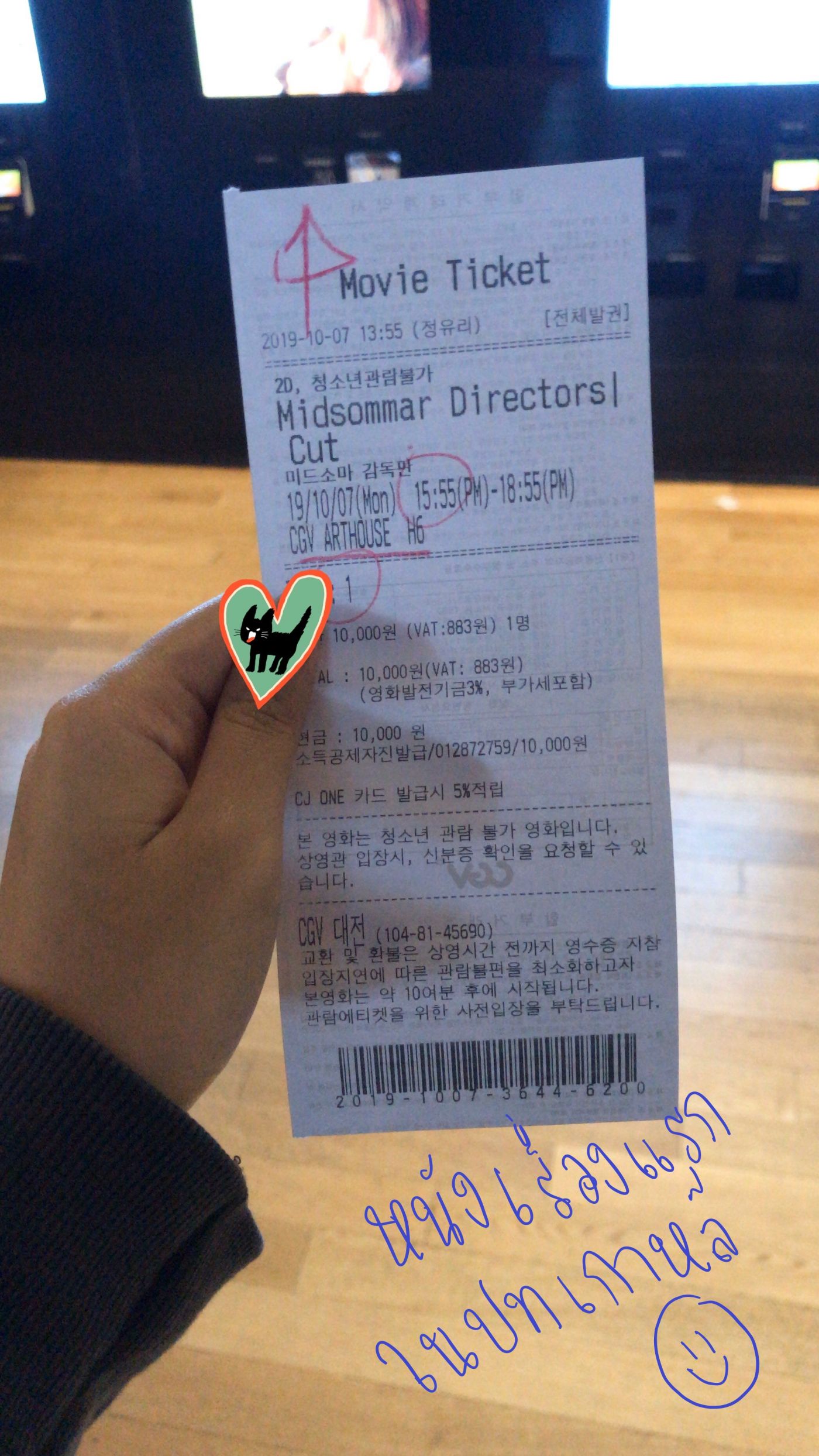 ด้วยความที่เป็นคนชอบดูหนังมากกกก เลยมีความแบบไหนๆก็มาอยู่เกาหลีตั้งปีนึงต้องได้เข้าโรงหนังบ้างละ บวกกับก่อนมาอยากดู Midsommar ของ Ari Aster มากเพราะติดใจ Hereditary ติดใจในความแปลกใหม่ในการทำหนังสยองขวัญของเขา เรื่องนี้พลาดตั้งแต่ที่ไทยเพราะบินก่อนวันฉาย1วัน ส่วนที่เกาหลีบินมาถึงไม่มีรอบฉายแล้ว แต่! โชคดีมากจ้า เมื่อศุกร์ที่ผ่านมาแบบ director's cut เข้าโรงที่นี่ คือดีใจมากกกเลยจัดการหาโรงหนังเช็ควันเช็ครอบจนวันนี้ในที่สุดก็ได้ดู ถ้าถามว่าเอ๊ะ ละรู้ได้ไงว่าหนังเข้าคือเราไปนู่นนี่ละเห็นผ่านตาบ่อยๆว่าที่นี่มีโรงหนังสองเจ้า(เท่าที่เห็นนะ ย้ำๆ)คือ CGV และ Mega Box เลยลองเสิร์ชในกูเกิ้ลตามด้วยคำว่า daejeon ซึ่งก็คือเมืองที่นี่อยู่ นี่ดูไปดูมาก็เจอเว็บไซต์ของ CGV (