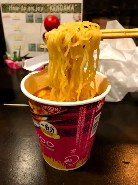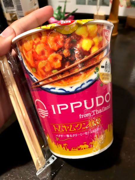 พอได้เวลากลับ ลืมไปว่ายังไม่ได้กินข้าวเย็น เลยแวะแฟมมิลี่มาร์ทหน้าทางเข้าโรงแรม หาอะไรกินก่อนนอนสักหน่อย ...บังเอิญไปเห็นบะหมี่รสต้มยำกุ้งบนชั้นพอดี เลยลองหน่อยสิว่าญี่ปุ่นเขาเข้าใจต้มยำกุ้งของเราว่ารสชาติเป็นยังไง5555