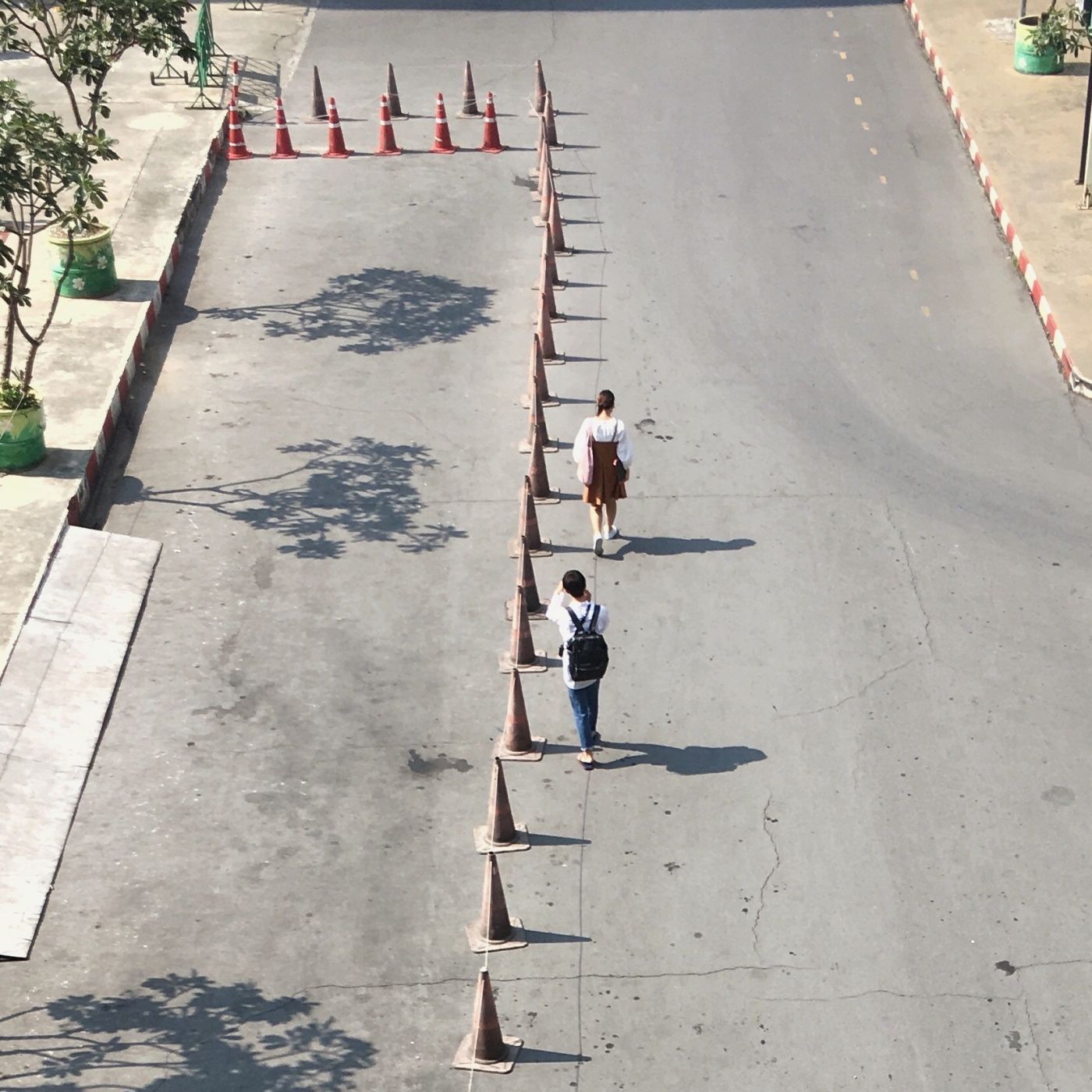 ก่อนเวลานัดหนึ่งชั่วโมง มาถึงที่นัดหมาย ฉันยืนรอริมขอบจัตุรัสรูปวงกลม เขามาถึงตรงเวลานัด ยิ้มโลกสว่าง ไม่เอ่ยคำใด ชวนไปกินก๋วยเตี๋ยวเจ้าดังฝั่งตรงข้าม เดินตัดจัตุรัส เขาสังเกตเห็นวงกลมบนผืนผ้าใบ วงกลมที่เราคิดว่ายังไม่เคยมีใครรับรู้ถึงการดำรงอยู่ วงกลมที่เราคิดว่ายังไม่เคยมีใครพูดถึง วงกลมที่ยังไม่ถูกบรรจุความหมาย รูปวงกลมฝีมือมนุษย์เขียนด้วยเส้นเพียงเส้นเดียว ไร้จุดด่างพร้อย ไร้รอยบิดเบี้ยว ราวกับเป็นวงกลมอันสมบูรณ์ เราก้มมอง จดจ้องอยู่แสนนาน