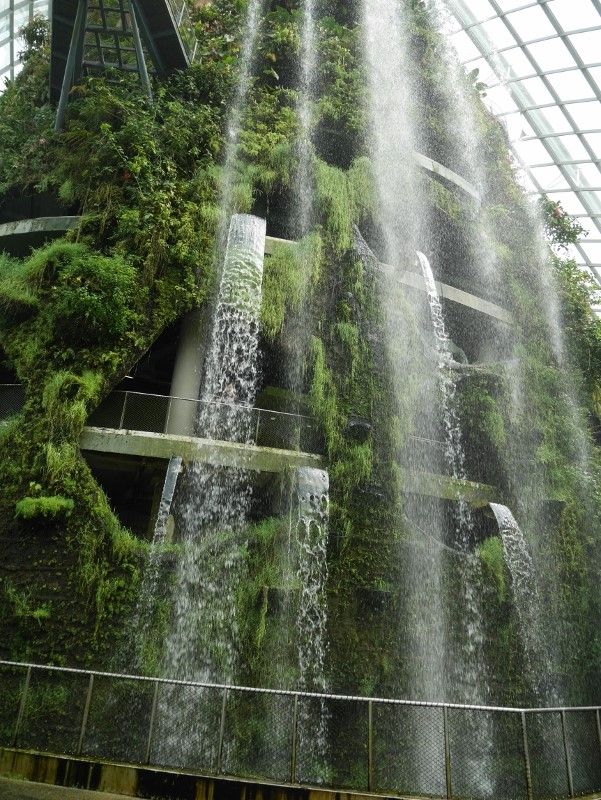 เดินเข้าไปในโดมสิ่งแรกที่เจอ คือ น้ำตกขนาดใหญ่ไหลมาจากยอดผาที่ คลุมด้วยหลังคาเรือนกระจก