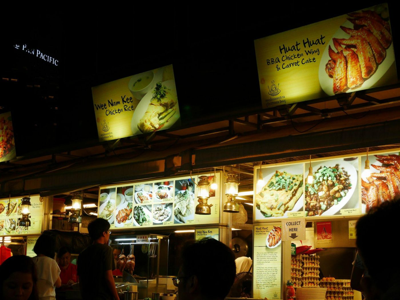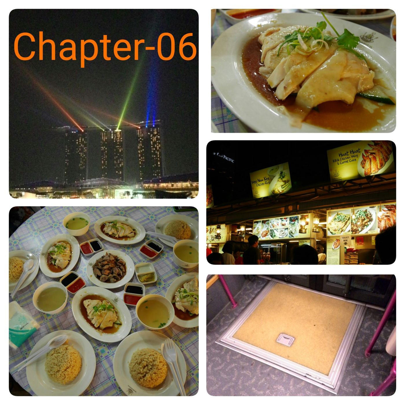 ศูนย์อาหารที่กำลังจะไป ไม่อยู่ในรีวิวใดๆที่อ่านมา แต่เราเห็นตอนเดินผ่านช่วงจะไปสะพานเกลียว (Helix Bridge) และเดาเอาว่า น่าจะมีข้าวมันไก่ รวมถึงอาหารหลายๆ อย่างให้ชิม (ผมกลับมาหาข้อมูลทีหลัง พบว่า ที่นี่ชื่อ ศูนย์อาหาร Makansutra Gluttons Bay )