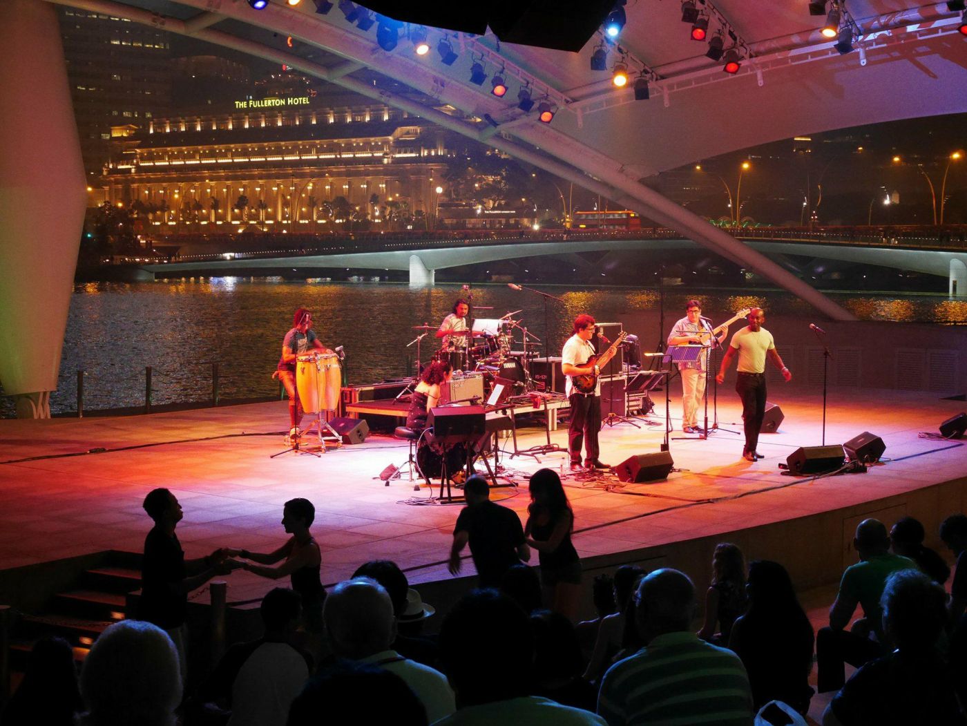 จากนั้น เราทั้งสี่ เดินย้อนกลับทางเดิม เพื่อไปสถานี MRT ที่ใกล้จุดที่เราอยู่มากที่สุด ระหว่างทาง เราแวะนั่งพักตรงเวทีการแสดงที่ยื่นเข้าไปในอ่าว ที่ตรงนั้นมีการแสดงของวงดนตรีวงหนึ่ง ที่มีชาวต่างชาติให้ความสนใจอยู่มากเลยทีเดียว