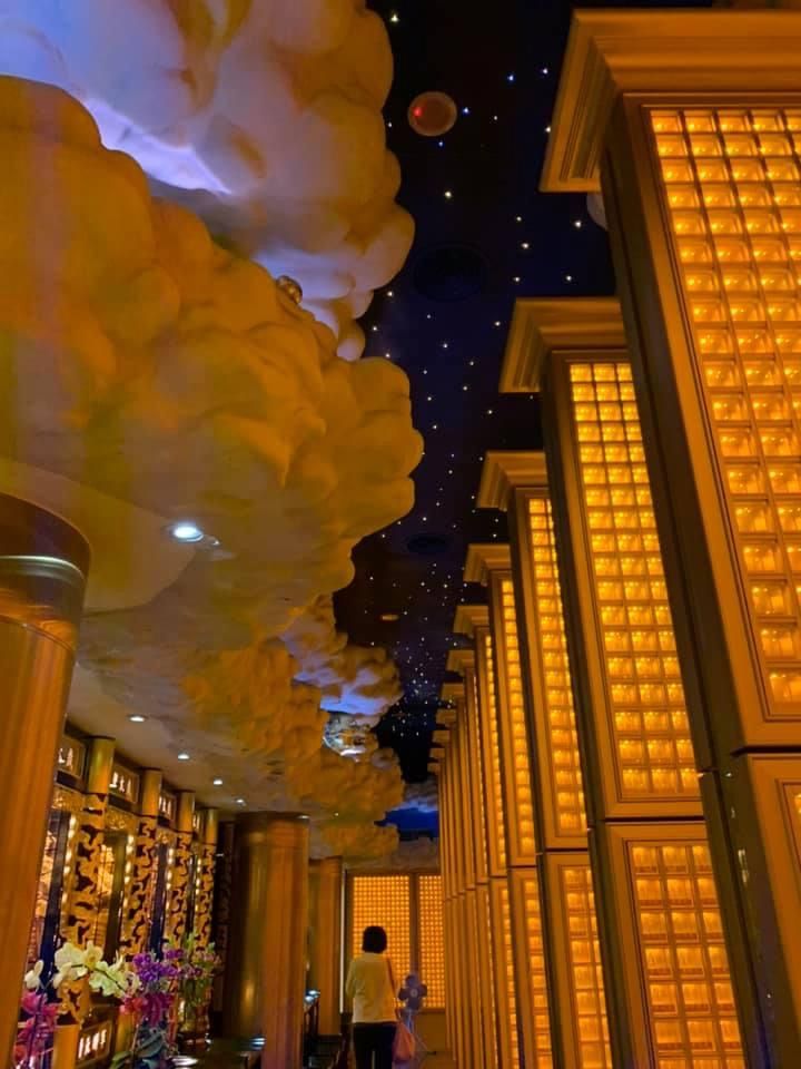 หลังจากนั้น เราเห็นเป็นอุโมงค์ คล้ายถ้ำ เดินเข้าไป เห็นมีเทพเจ้าแต่ละองค์ในลัทธิเต๋า มีเสียงสวดมนต์ และมีคนไต้หวันมาไหว้พระด้วยกันหลายคน